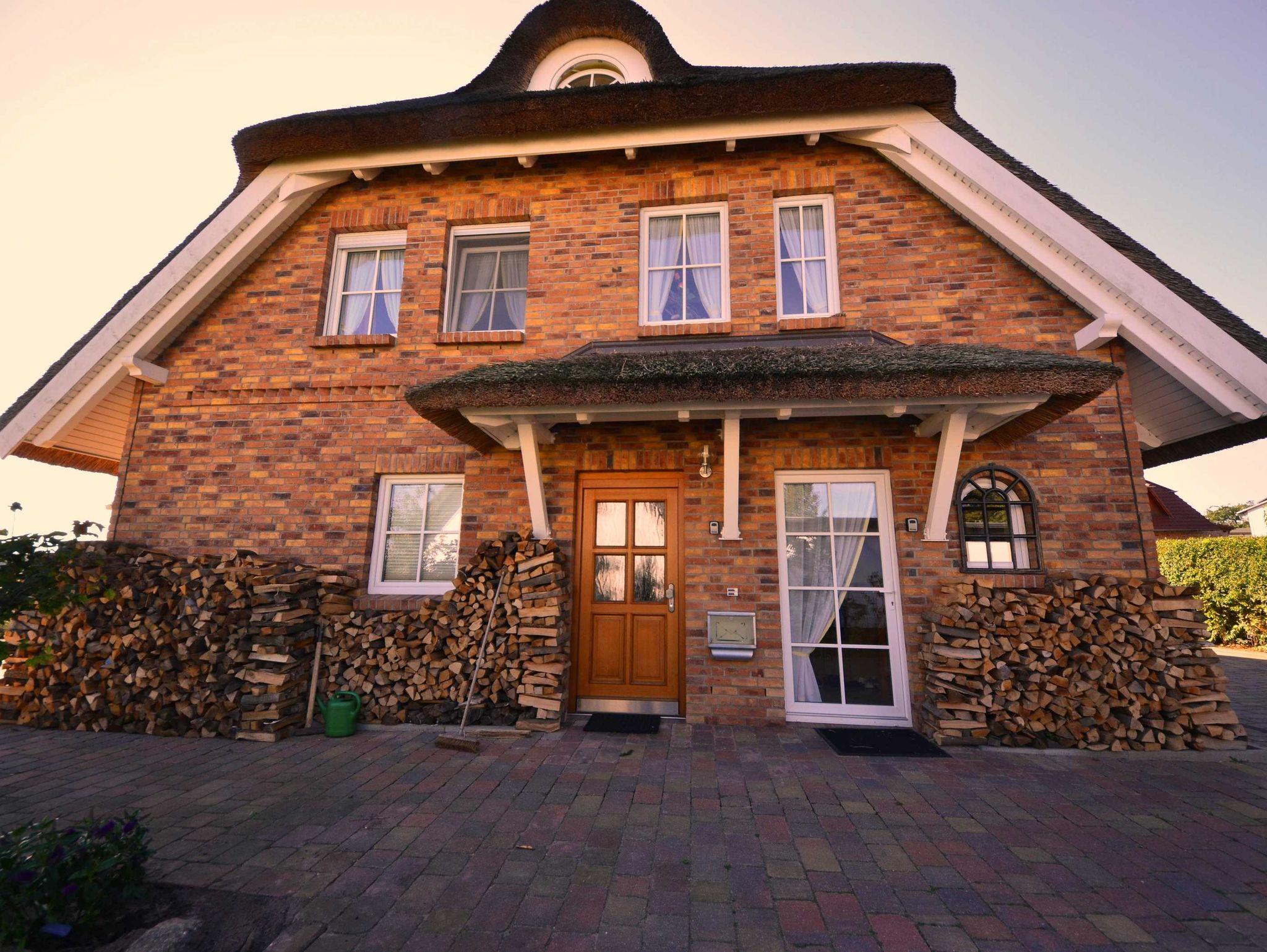 Neue reetgedeckte Maisonnette-Ferienwohnungen (86 m²) mit drei Doppelschlafzimmern, zwei Bädern in einer reetgedeckten und verklinkerten Doppelhaushälfte. Das Haus wurde 2008 neu errichtet.