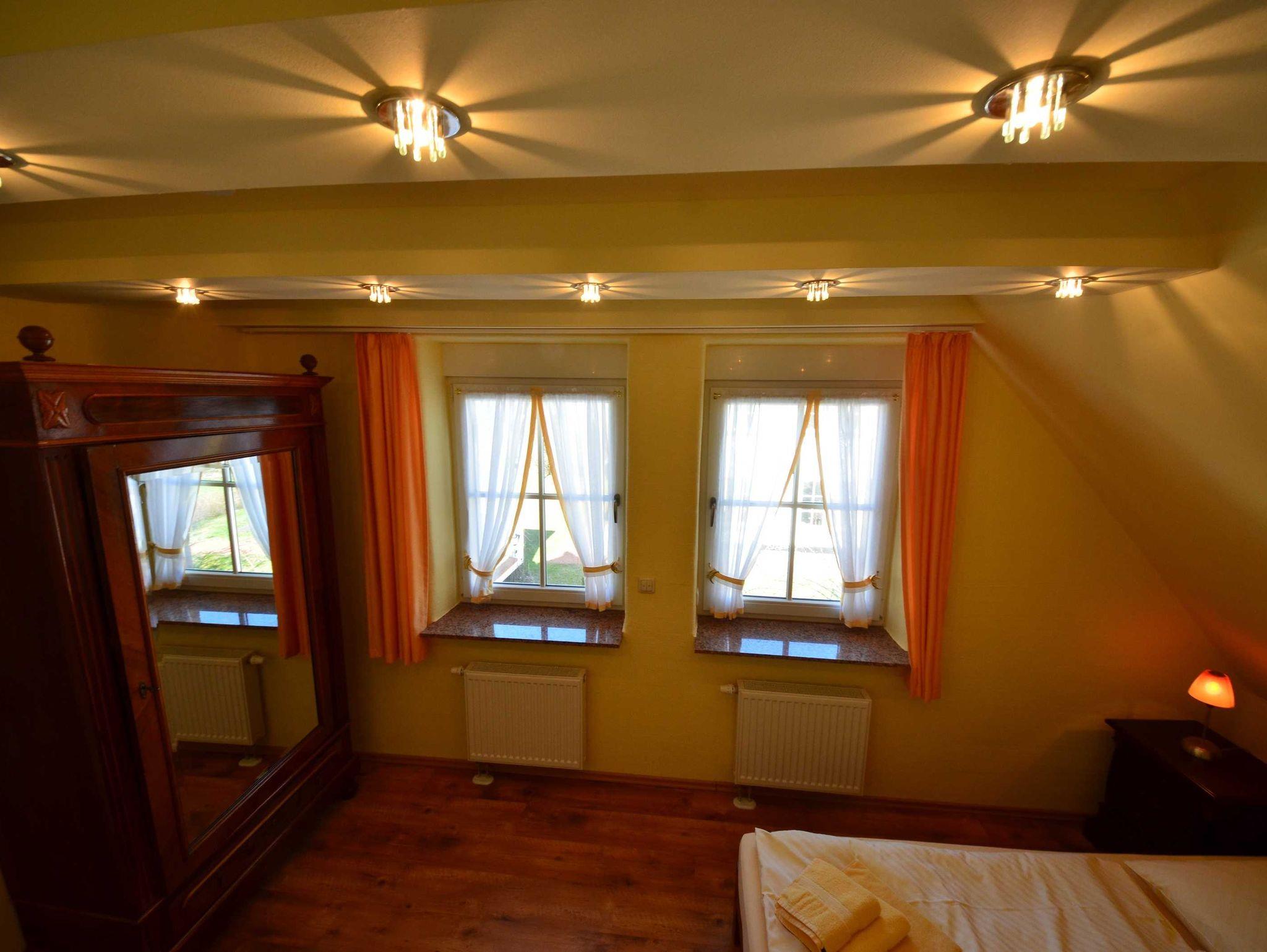 Die Sprossenfenster vermitteln eine gemütliche Atmosphäre und passen zum Charakter des Dorfes. Großzügiges Wohn-/Esszimmer, mit Stereo, CD, teils antike Schränke, Garderobe, Schuhschrank, Ledergarnitur, Opiumtisch, Geschirrschrank, Spiegel, Wände dekoriert mit Gemälden. Die Schlafzimmer sind mit Spiegeln und Gemälden dekoriert, teils elektrische Rollläden und Fliegenrollos mit antiken oder Einbauschränken.