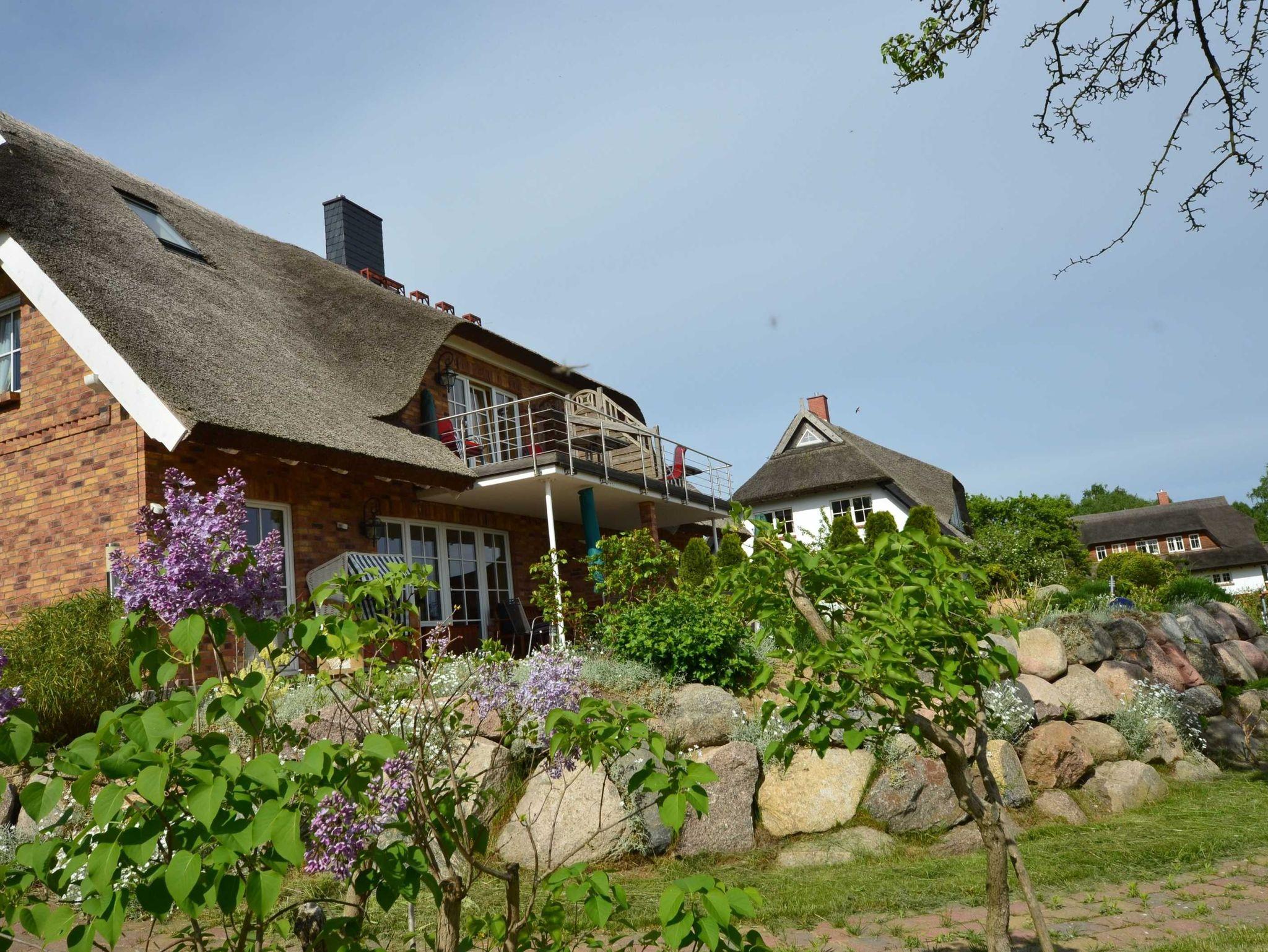 Neue reetgedeckte Maisonnette-Ferienwohnungen (86 m²) mit drei Doppelschlafzimmern, zwei Bädern in einer reetgedeckten und verklinkerten Doppelhaushälfte. Das Haus wurde 2008 neu errichtet.