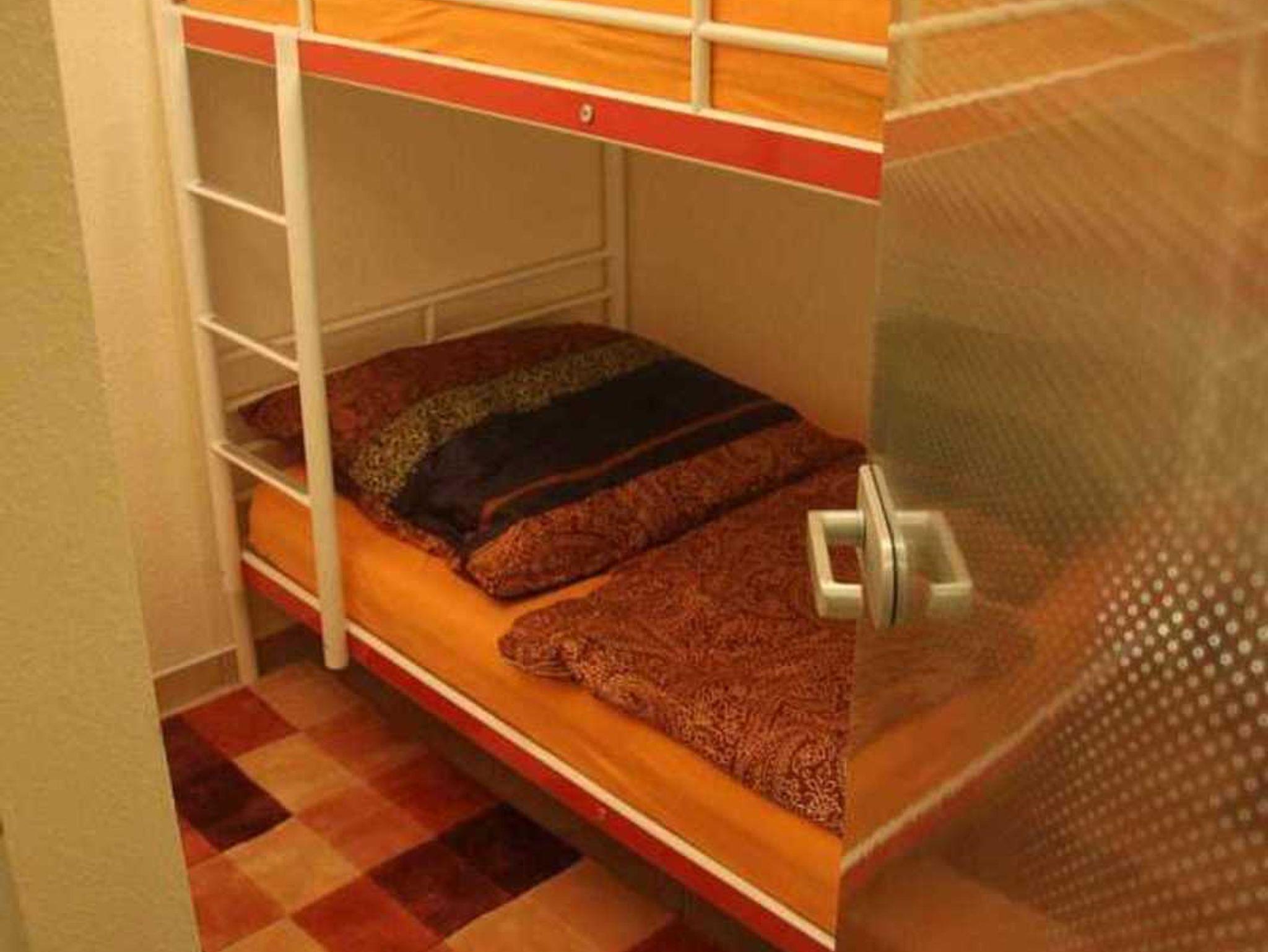 Es gibt ein geräumiges Schlafzimmer mit Kleiderschrank und Doppelbett sowie ein kleineres 2. Schlafzimmer mit Doppelstockbett (90 x 200cm) und Glastür. Im Wohnzimmer steht eine ausziehbare Schlafcouch zur Verfügung.