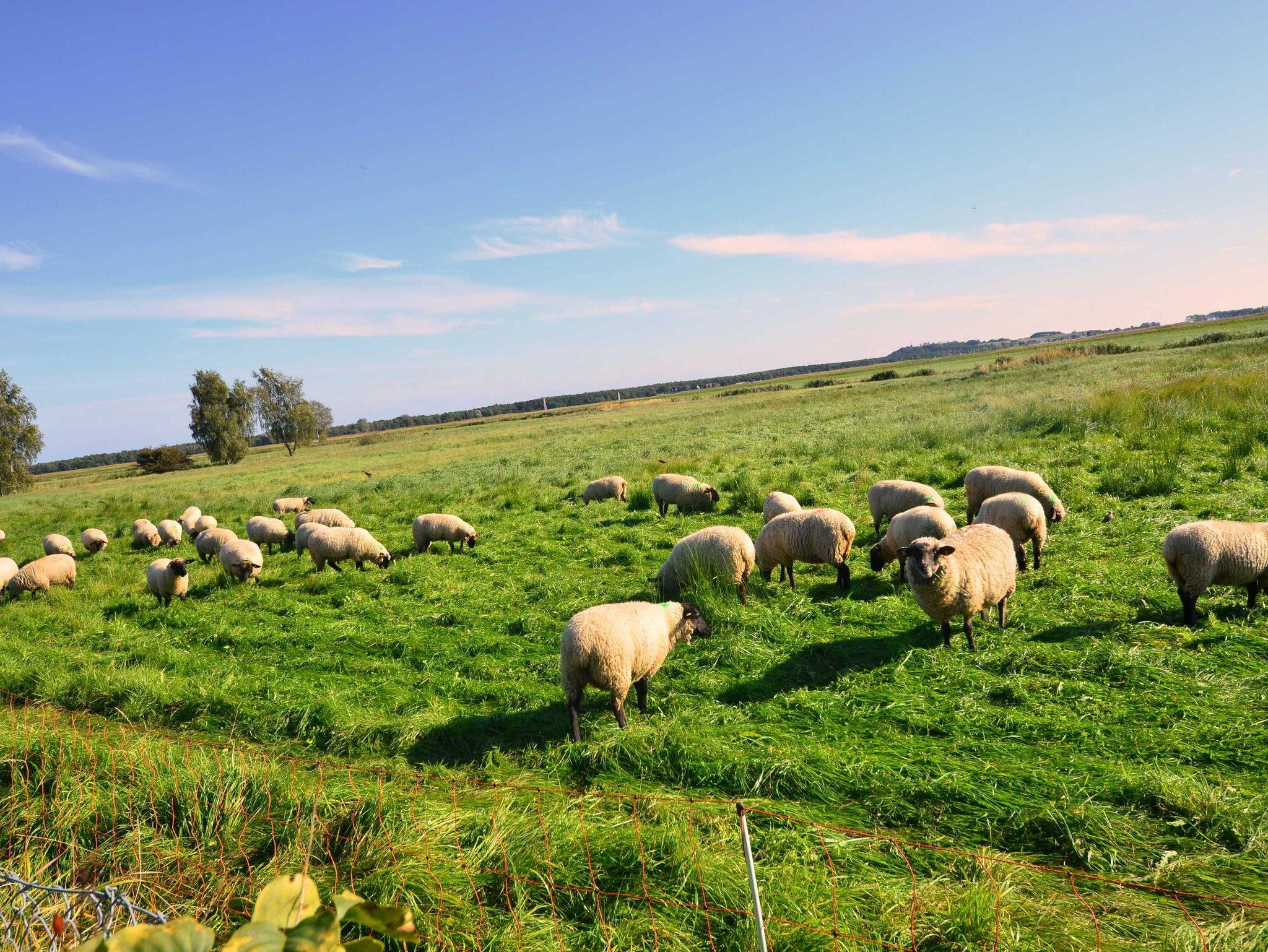 Ferienwohnung „Sonnenkamp“ im Erdgeschoss in der neuen reetgedeckten und verklinkerten Doppelhaushälfte in Groß Zicker auf der Halbinsel Mönchgut. Die Wohnung hat einen eigenen separaten Eingang und ist für bis zu vier Personen und ein Baby geeignet.