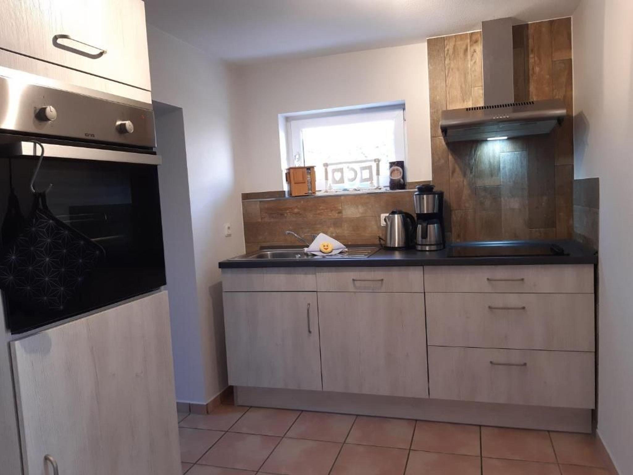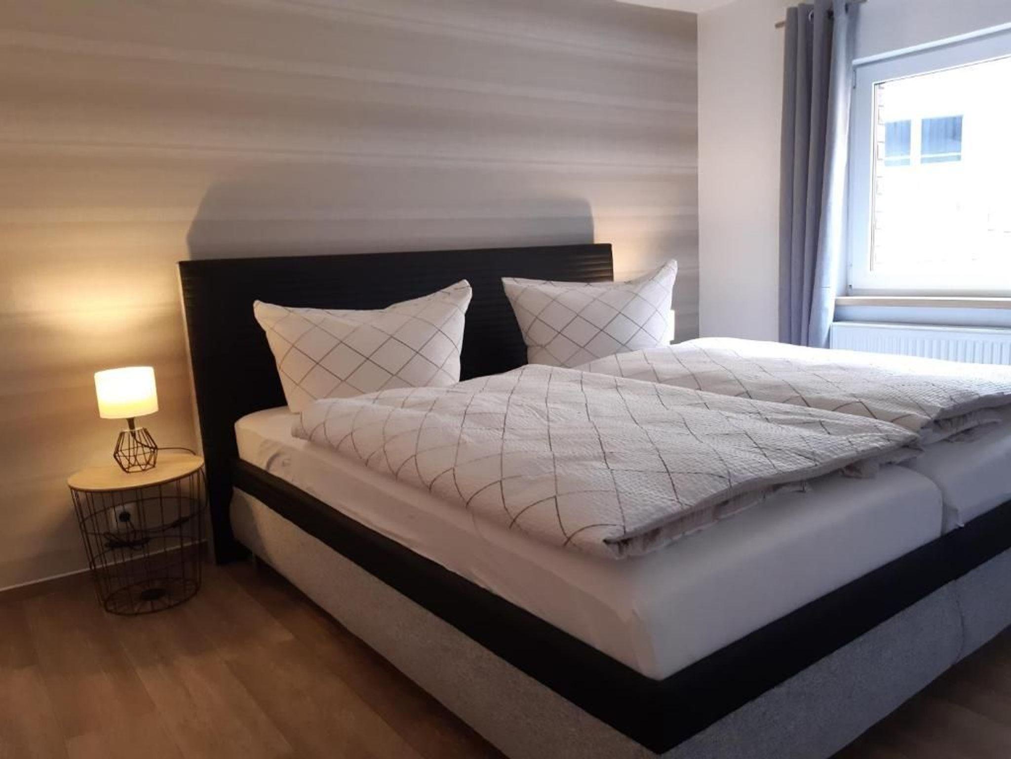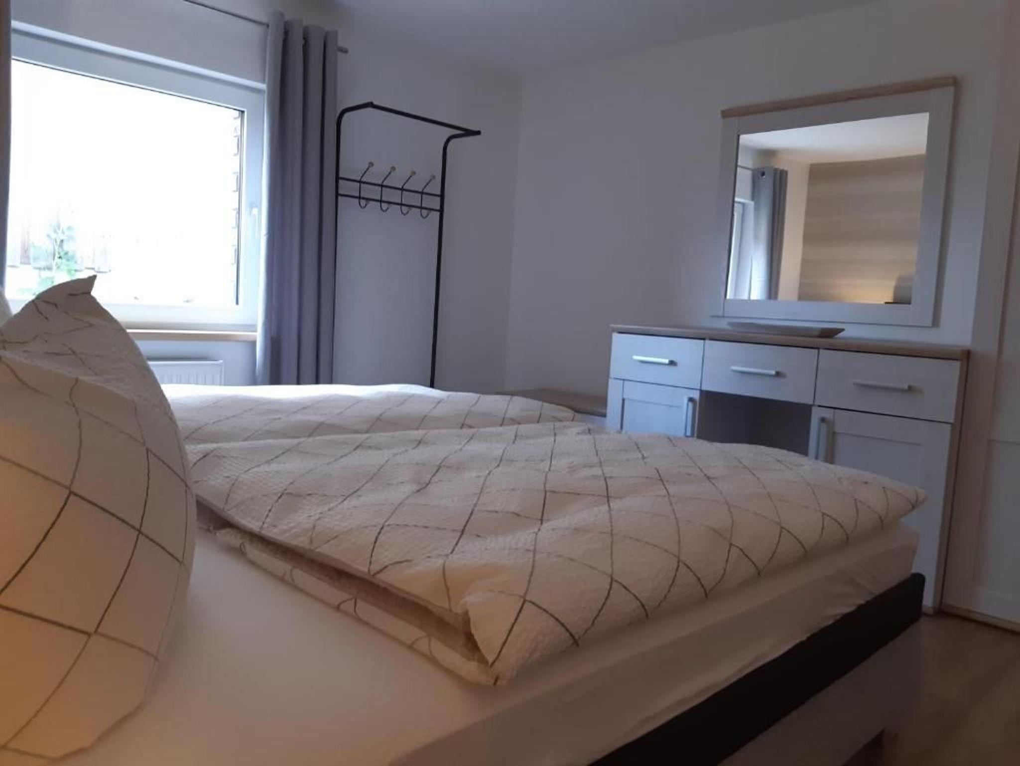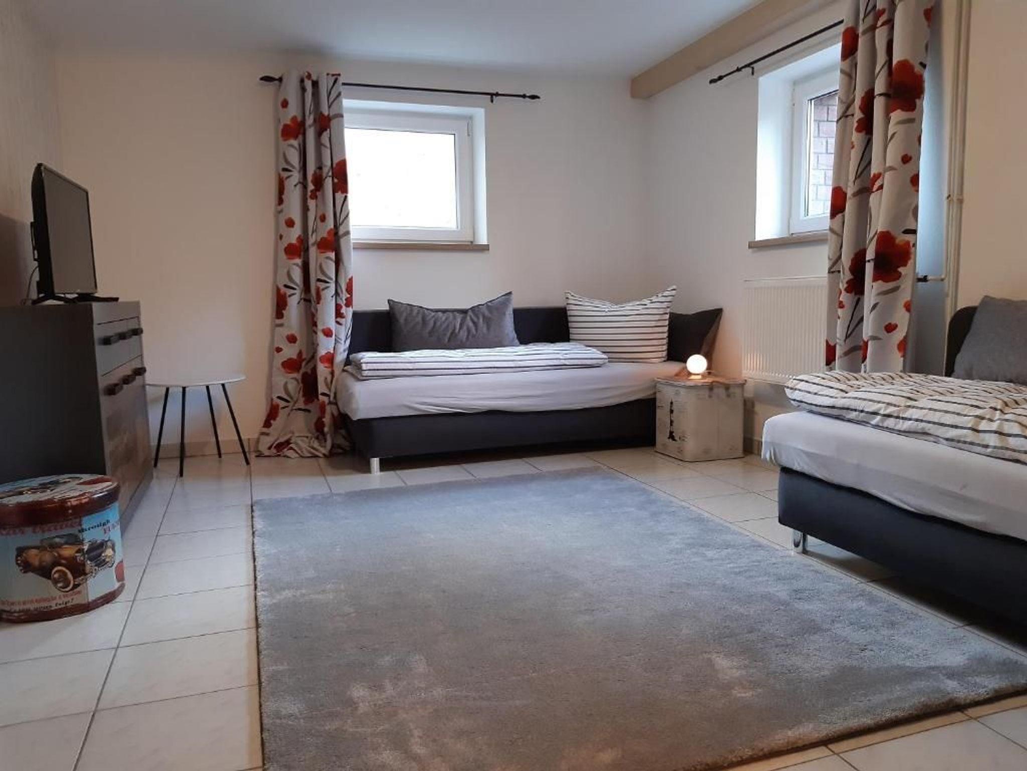 Das 3- Zimmerappartement ist ca. 70 qm groß und ist bis zu 4 Personen belegbar. Die Nichtraucher- Ferienwohnung befindet sich im Erdgeschoss des Hauses. Neben dem Wohnraum und separater Küche mit Essbereich, gibt es zwei Schlafräume mit einem Doppelbett und zwei Einzelbetten und ein Badezimmer mit Dusche und WC.