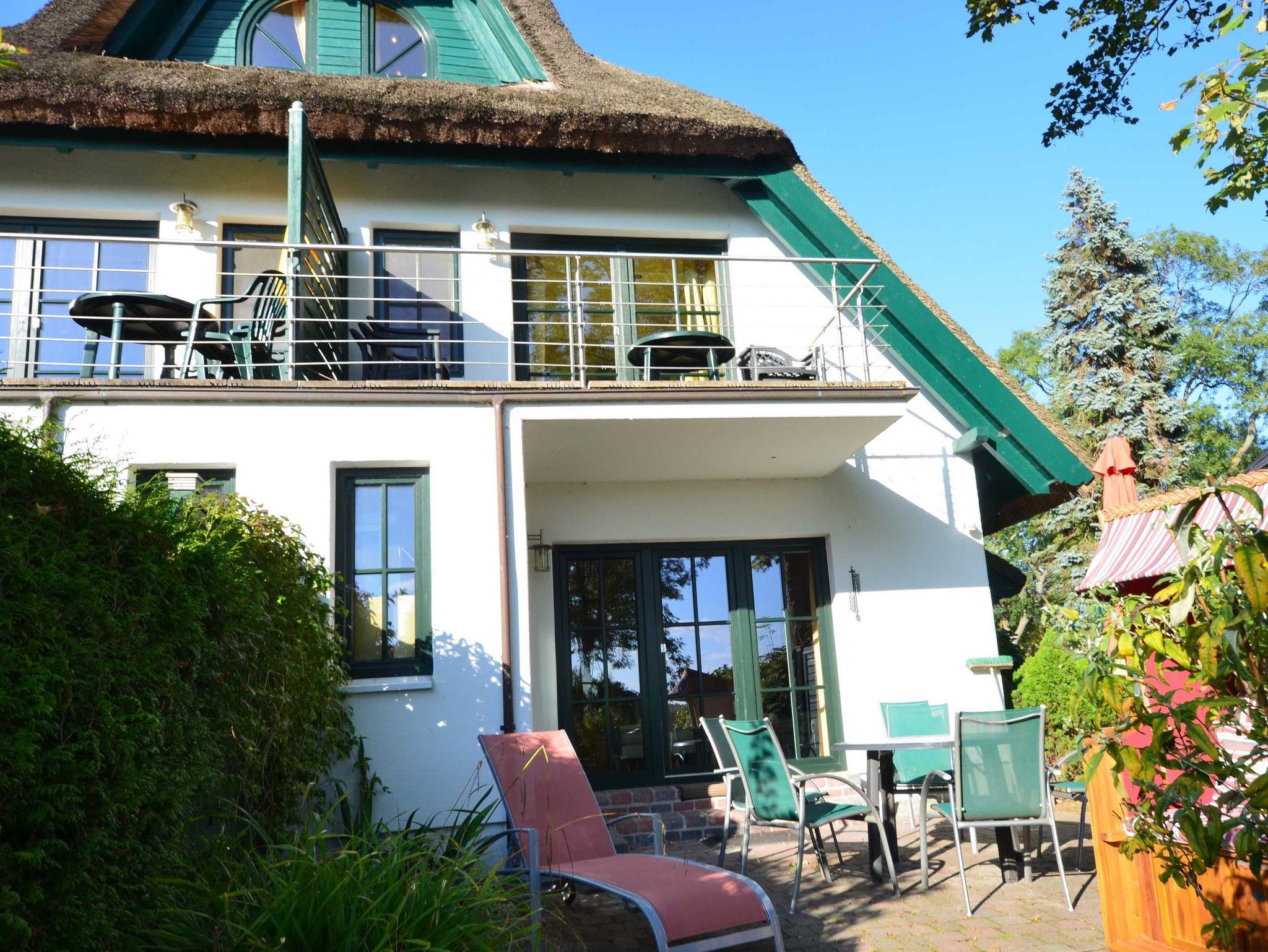 Gemütliches Reetdachhaus mit Terrasse und Garten in Groß Zicker, ideal für Familienurlaub auf Rügen.