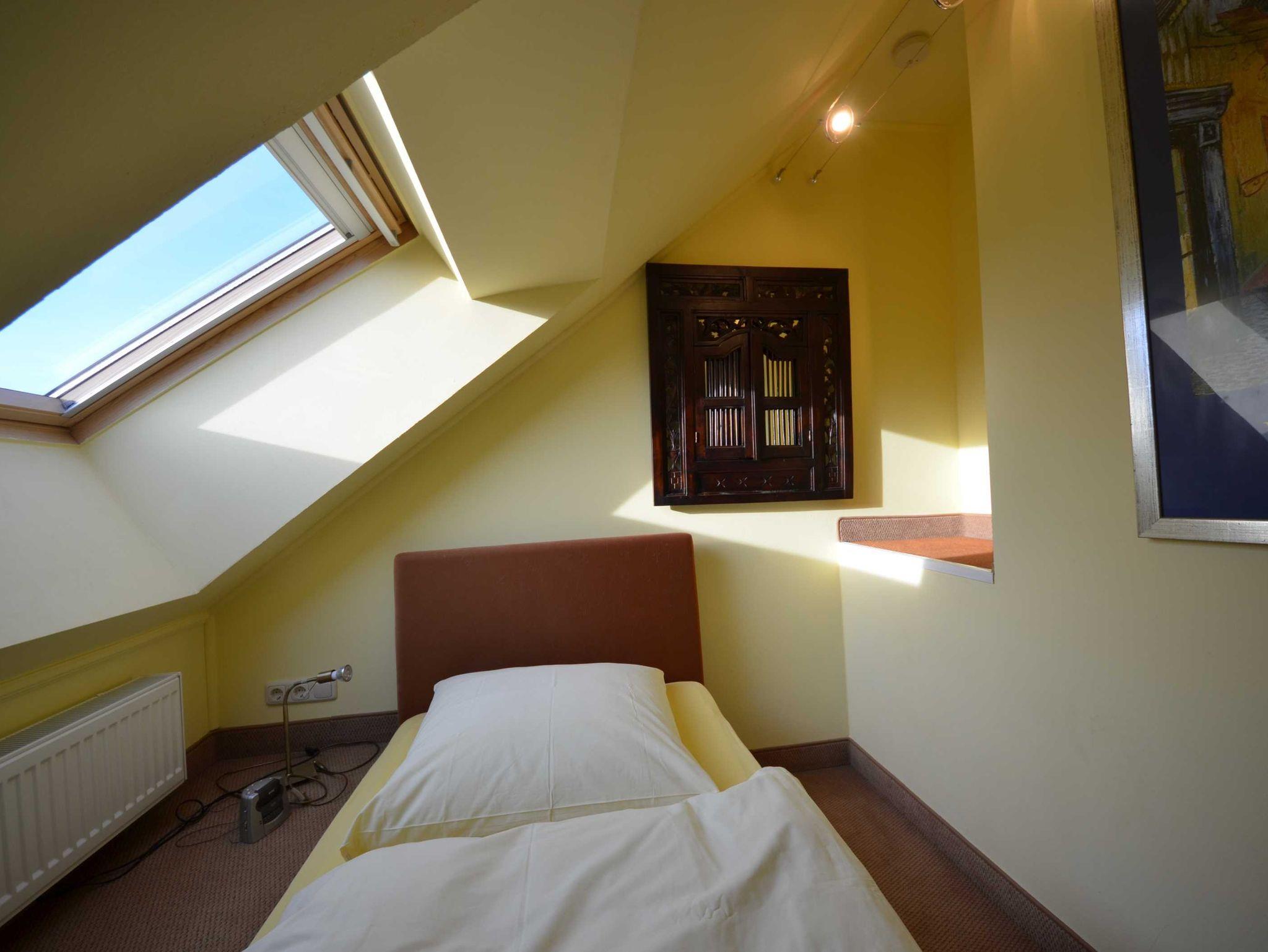1 kleines Einzelschlafzimmer mit Einzelbett, Einbauschrank