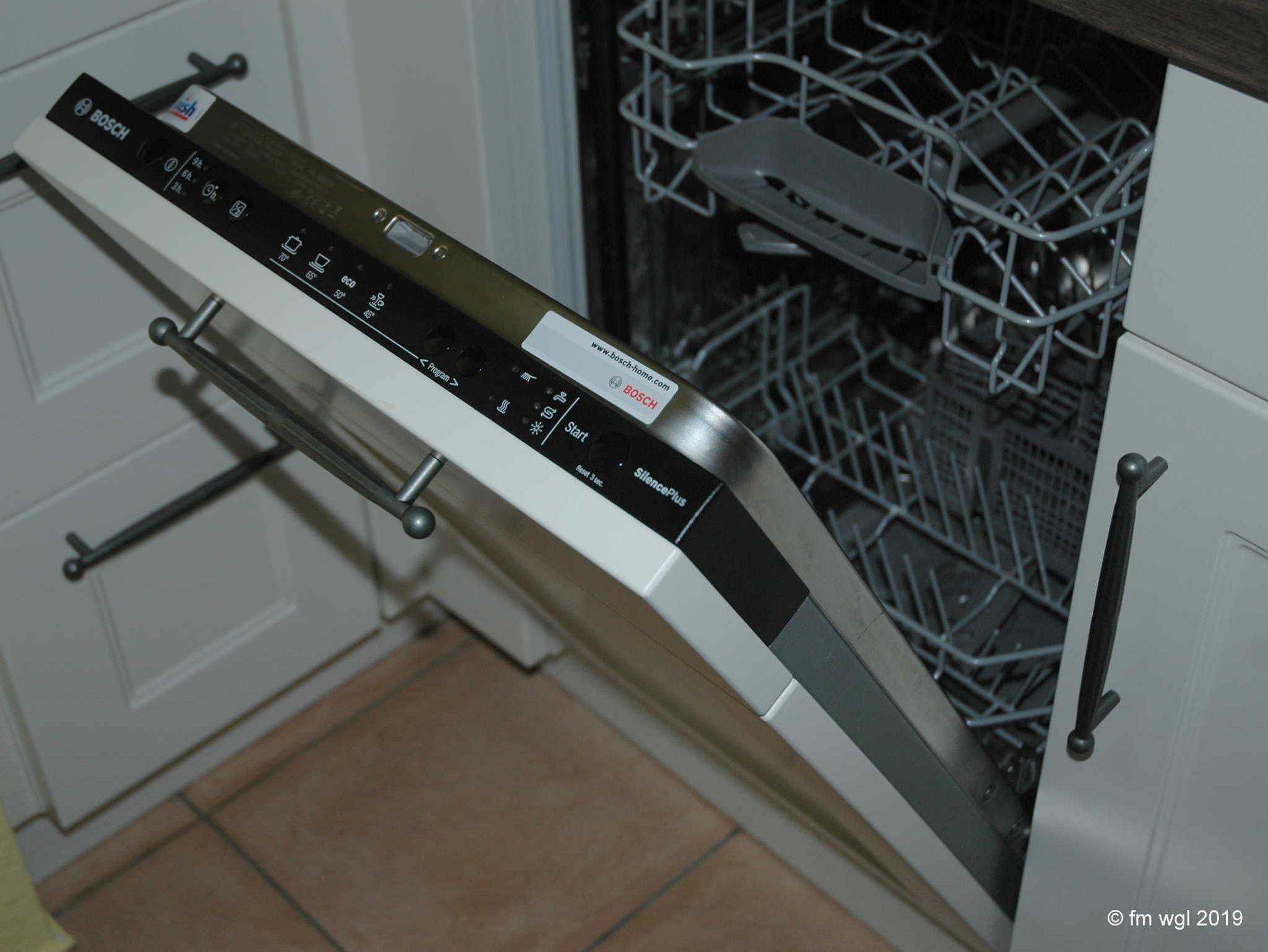 Die offene Küche mit Essbereich für bis zu 6 Personen ist komplett ausgestattet mit einem kleinen Geschirrspüler, Kühlschrank mit Gefrierfach, Backofen und Ceranfeld. Diverse Küchenutensilien sowie Wasserkocher, Toaster, Kaffeemaschine runden die Küchenausstattung ab.