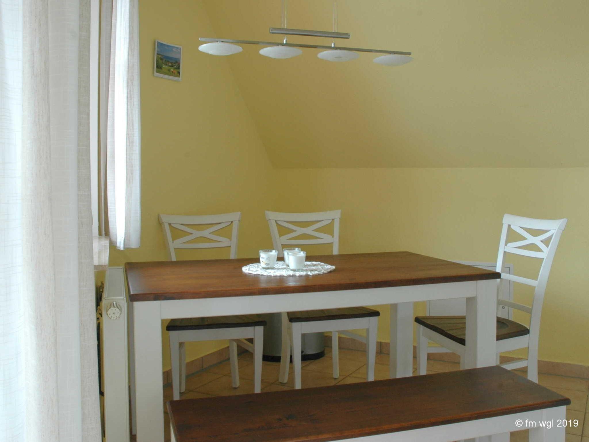 Die lichtdurchflutete 85m² große Nichtraucherwohnung über zwei Etagen, liegt im ersten Obergeschoss und verfügt über zwei Schlafzimmer, einen großzügigen Wohnraum mit angrenzendem Balkon in Südausrichtung, offene Küche und ein Badezimmer. Die Wohnung ist für bis zu vier Erwachsene und zwei Kinder bis 16 Jahre geeignet. Das Apartment wurde mit hellen modernen Möbeln im Landhausstil eingerichtet, die sich ganz wunderbar in die Maisonette Wohnung einfügen.