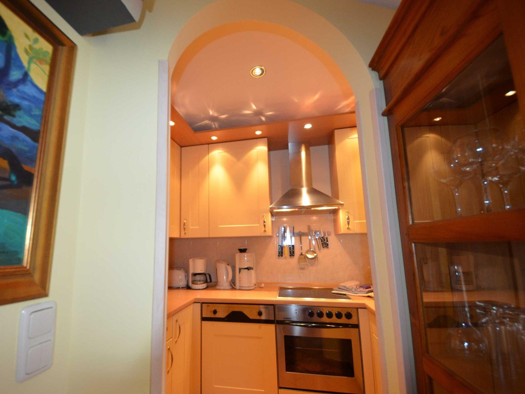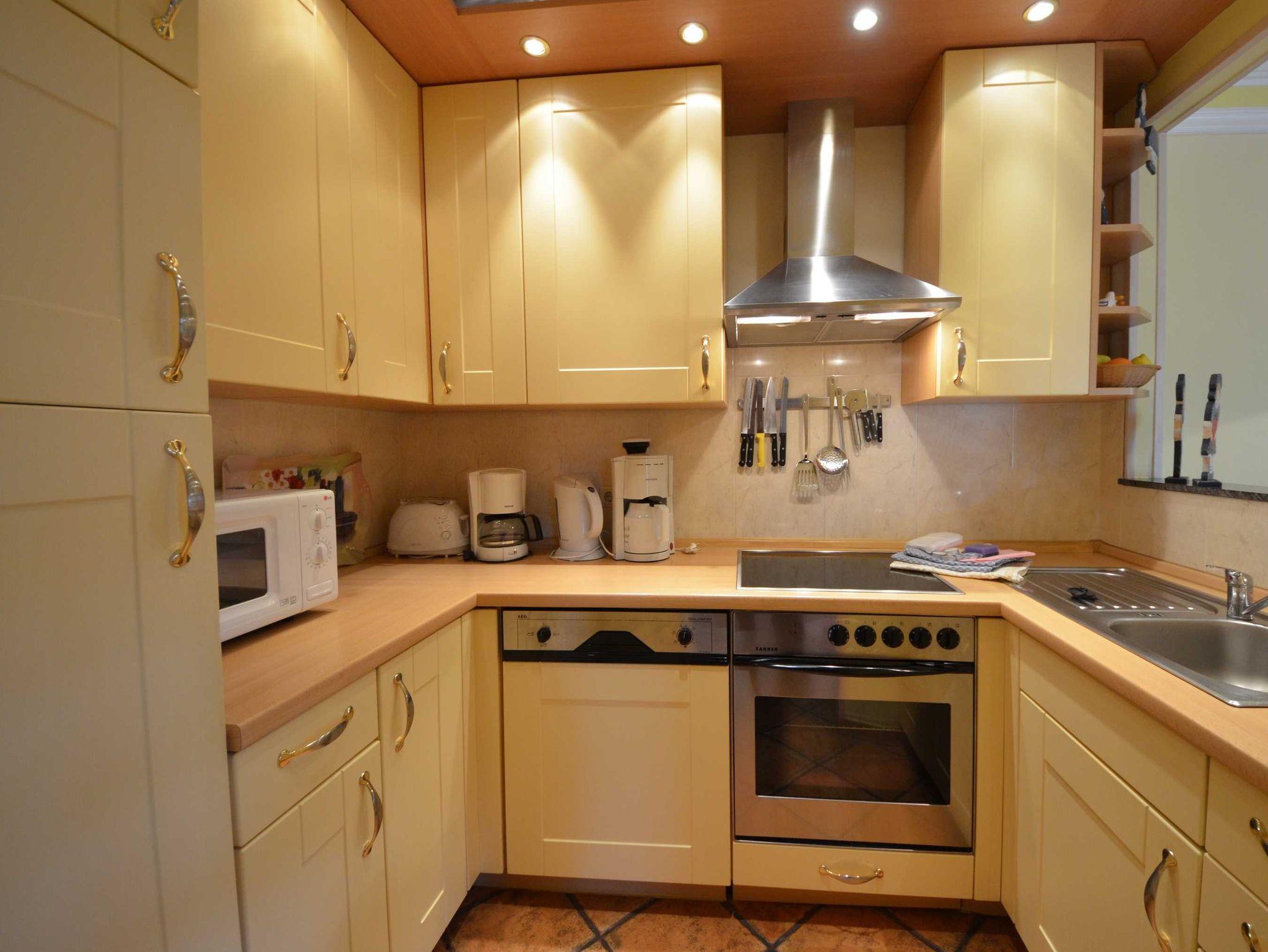 Geschirrspüler, Mikrowelle, Herd mit Ceran - Kochfeld und Backofen, Turmhaube, 2 Kaffeemaschinen, Wasserkocher, Eierkocher, Toaster, Waffeleisen, Mixer,