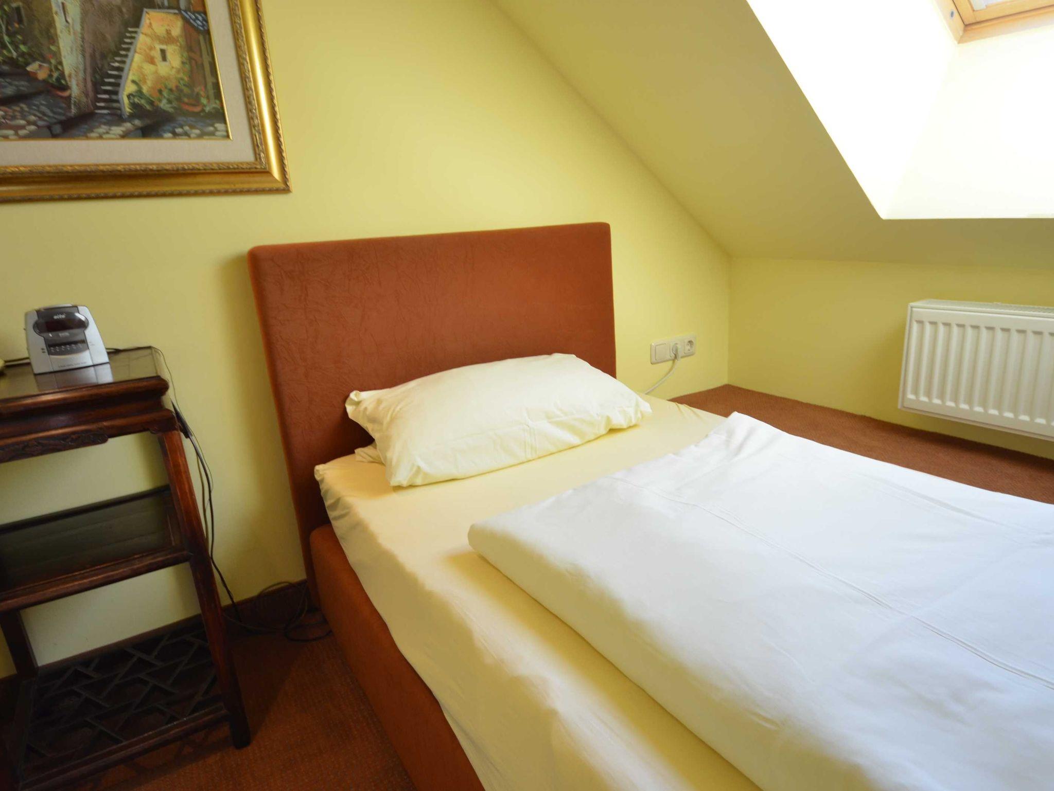 1 kleines Einzelschlafzimmer mit Einzelbett, Einbauschrank