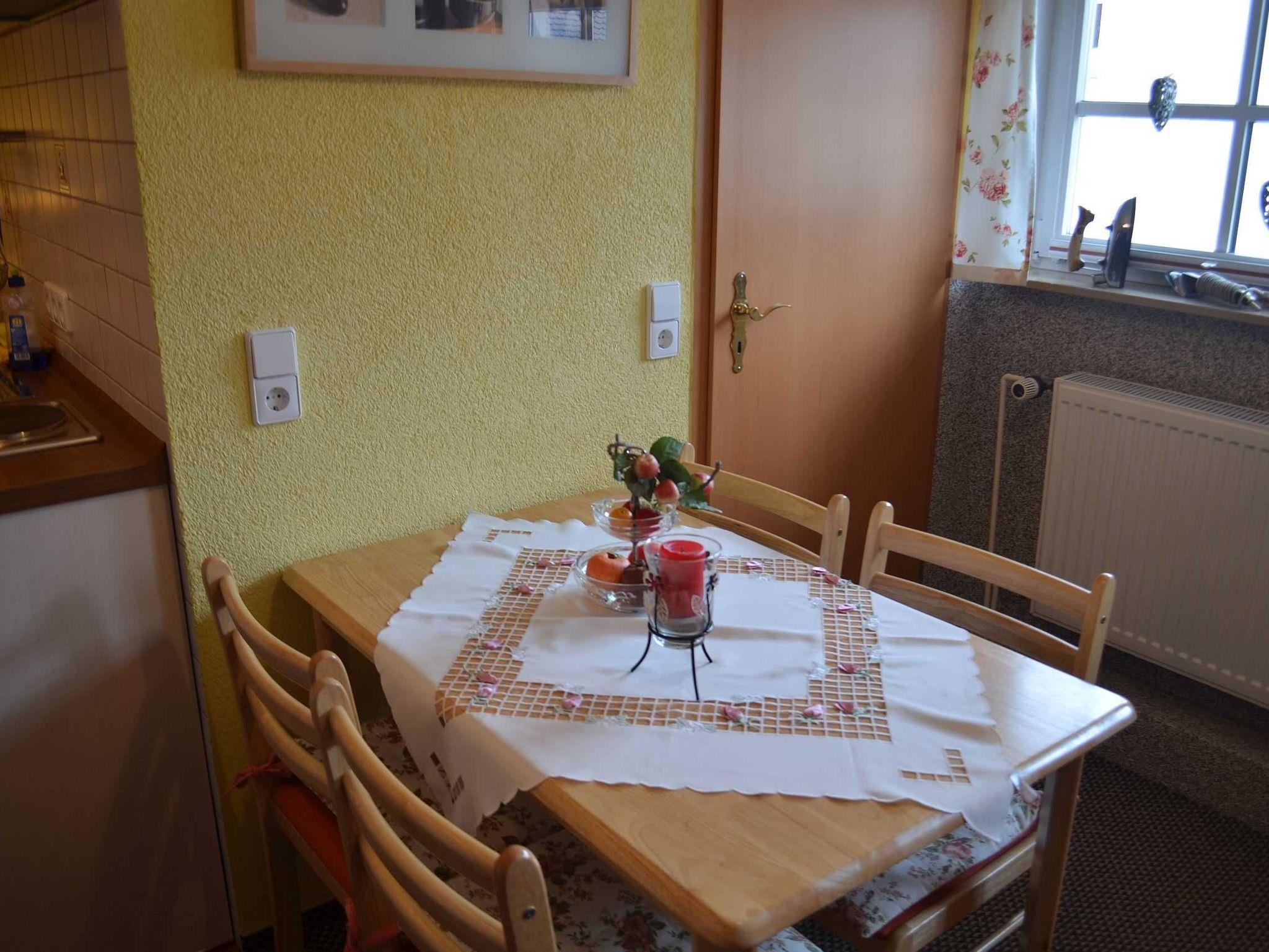 Die gemütliche Ferienwohnung (Nichtraucher) mit Ihrer maritimen Ausstattung bietet mit seinen ca. 33 qm ausreichend Platz für 2-3 Personen. Der Wohnbereich umfasst eine gemütliche Couchecke (Aufbettung für 3.Person) mit Couchtisch ein Sideboard mit Radio und TV-Gerät. Die angrenzende Einbauküchenzeile mit Essecke bietet Ihnen ein 2 Platten-Ceranfeld, Abzugshaube, kleinen Backofen, Spüle, Kaffeemaschine, Wasserkocher, Toaster sowie diverse Küchenutensilien. Das Schlafzimmer verfügt über ein Doppelbett mit Nachtischkonsolen und einen Kleiderschrank. Das geflieste Tageslichtbad verfügt über eine Wellness-Dusche, WC, Waschtisch und einen Fön. WLAN inklusive. Die bestuhlte Gemeinschaftsterrasse lädt zum Verweilen ein. Das separate und gemütliche Blockhaus auf dem Grundstück der Vermieter, steht allen Gästen der Pension zur Verfügung. Ein gemütlicher Grillabend findet in der Saison 1 x wöchentlich zusammen mit dem Vermieter statt. Genauere Informationen erhalten Sie vor Ort. Auf Anfrage können Sie vor Ort ebenfalls den Brötchenservice in Anspruch nehmen sowie das Frühstück p.P. für 7,00 Euro dazu buchen. Bis 14 Tage vor Anreise können Sie die Erstausstattung eines Wäschepaketes für 6,00 Euro p.P. dazu buchen bzw. durch eigene ergänzen. Haustiere sind nicht erlaubt.