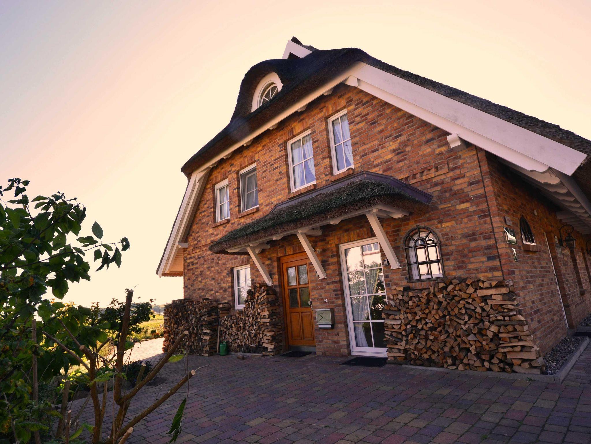 Gemütliche Reetdach-Ferienwohnung in Groß Zicker mit Meerblick, Terrasse, Kamin und Garten für erholsamen Urlaub an der Ostsee.