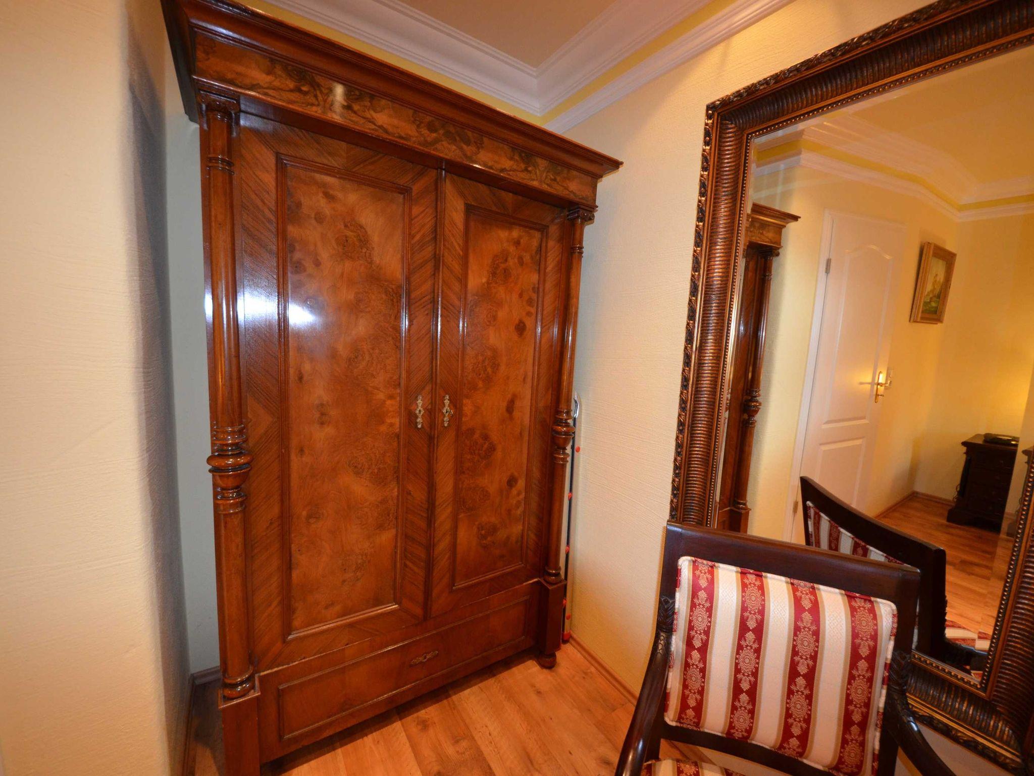 Die Sprossenfenster vermitteln eine gemütliche Atmosphäre und passen zum Charakter des Dorfes. Großzügiges Wohn-/Esszimmer, mit Stereo, CD, teils antike Schränke, Garderobe, Schuhschrank, Ledergarnitur, Opiumtisch, Geschirrschrank, Spiegel, Wände dekoriert mit Gemälden. Die Schlafzimmer sind mit Spiegeln und Gemälden dekoriert, teils elektrische Rollläden und Fliegenrollos mit antiken oder Einbauschränken.