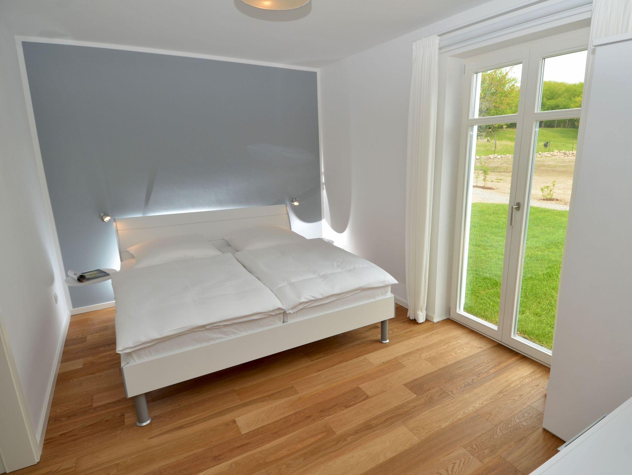 Das ruhig gelegene Schlafzimmer ist mit einem großen, bequemen Doppelbett ausgestattet.