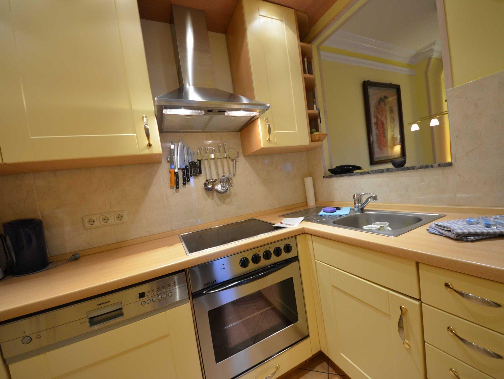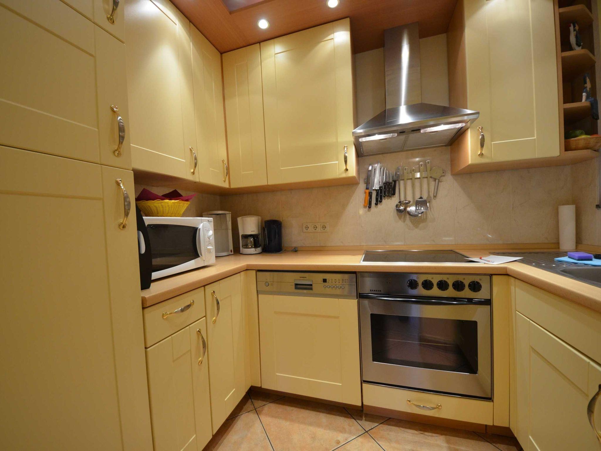 Geschirrspüler, Mikrowelle, Herd mit Ceran - Kochfeld und Backofen, Turmhaube, 2 Kaffeemaschinen, Wasserkocher, Eierkocher, Toaster, Waffeleisen, Mixer,