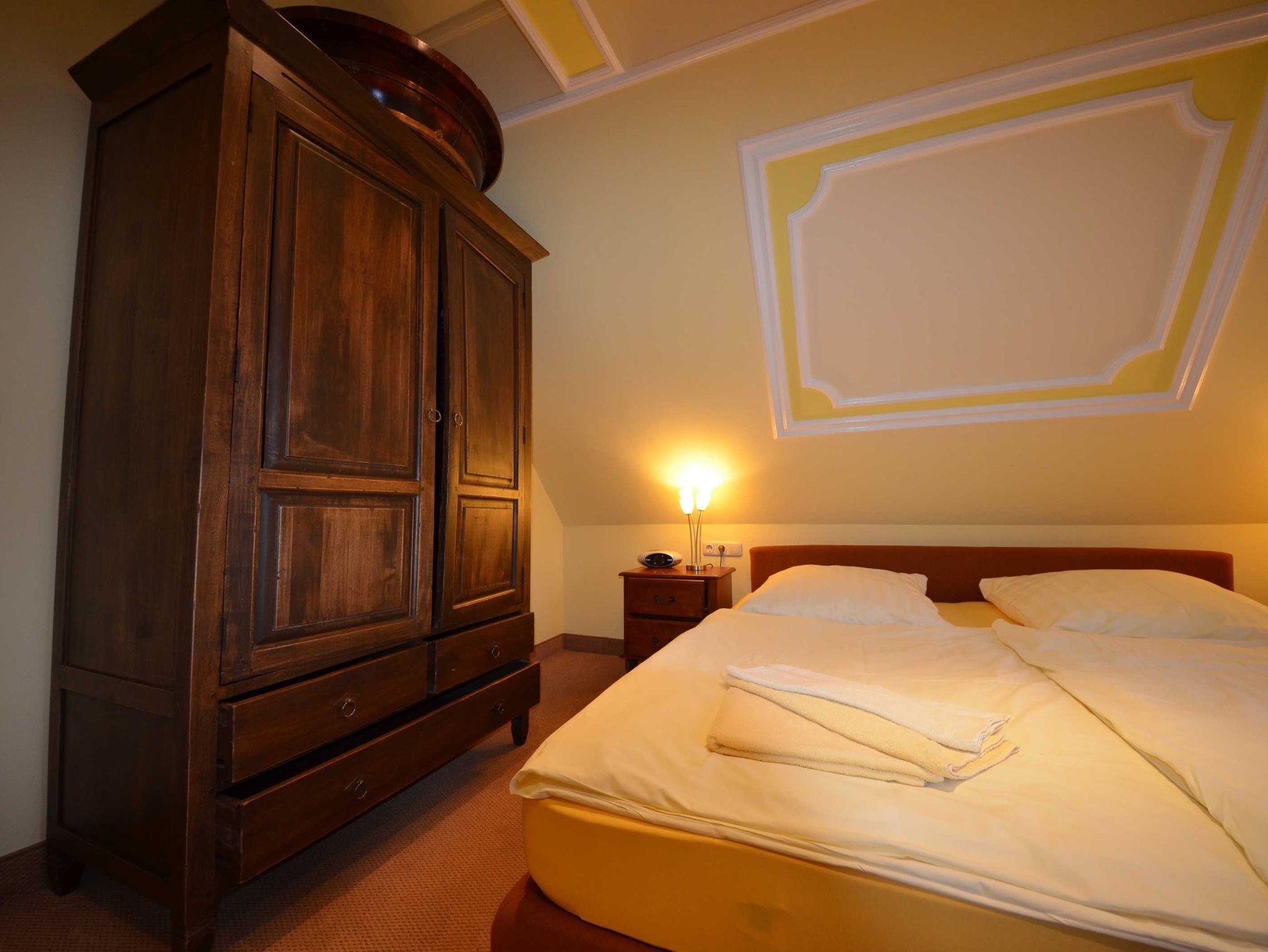 1 kleines Doppelschafzimmer mit Doppelbett 1,60 x 2,00 m, Einbauschrank