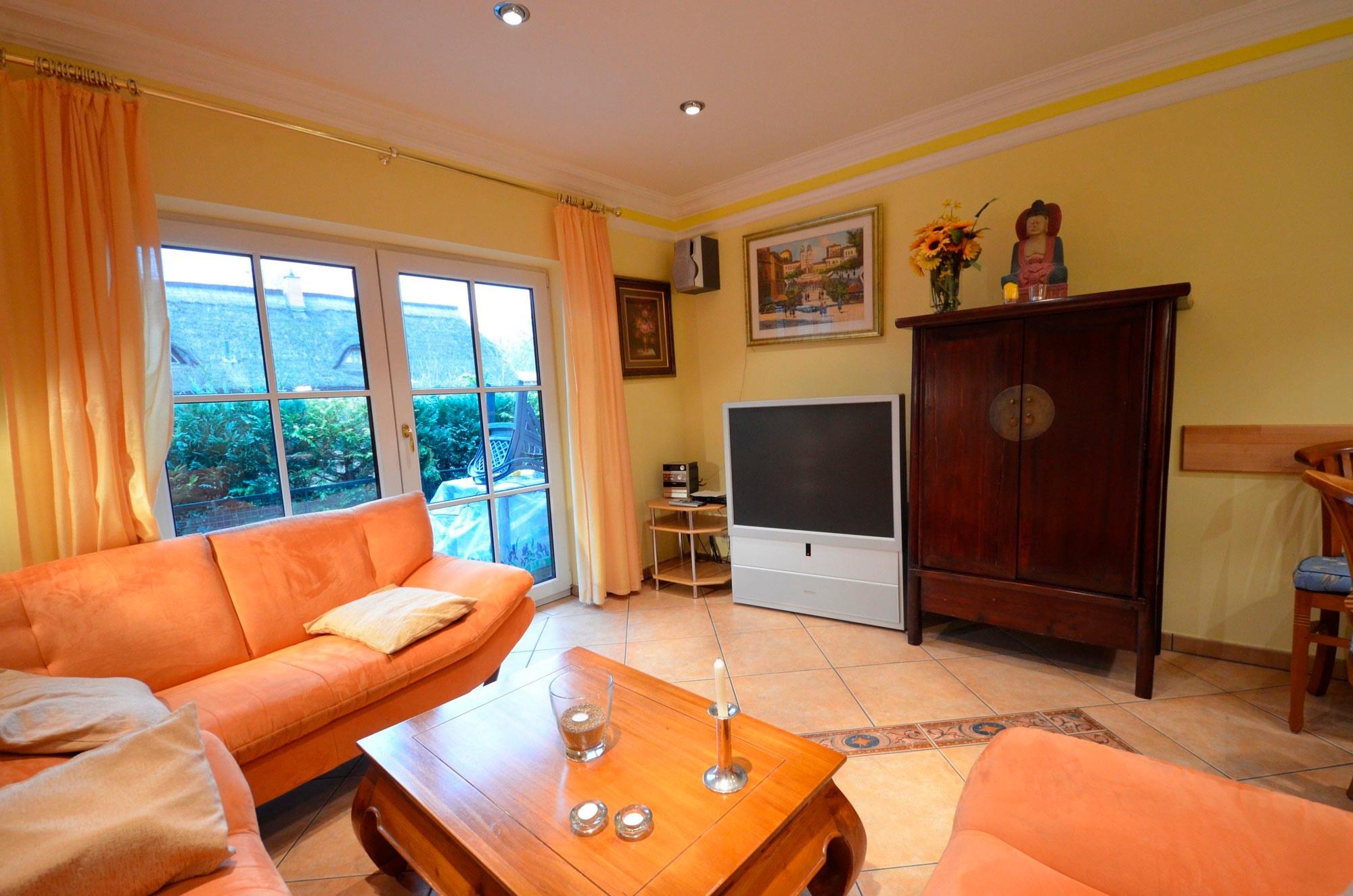 Stilvolles Reetdach-Reihenhaus in Groß Zicker auf Rügen, ideal für Familien mit Komfort und Nähe zur Natur.