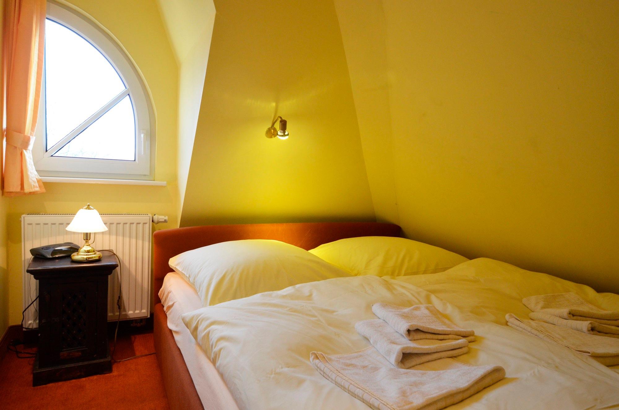 2 kleine, schräge aber gemütliche und helle Zimmer mit Einbauschränken, einmal mit Einzelbett 90 x 200 und einmal mit einem Doppelbett 160 x 200. Bettwäsche aufgezogen.