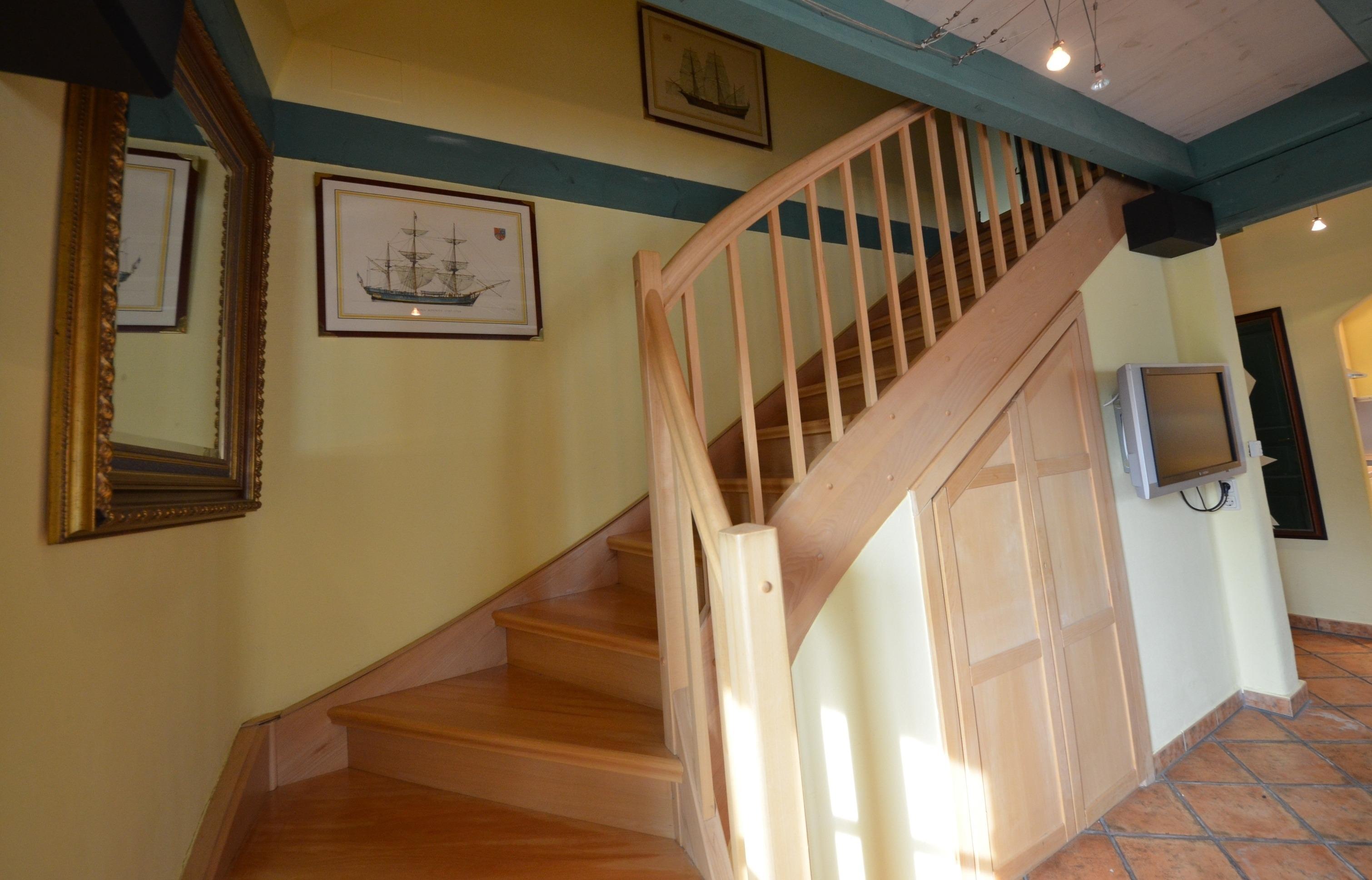 Die Holz - Sprossenfenster mit dekorativen Klappläden und die Reetdacheindeckung vermitteln eine gemütliche Atmosphäre und passen zum allgemeinen Charakter des Dorfes. Das Haus hat einen eigenen separaten Eingang. Schön eingewachsene Terrasse mit Teak- Gartenmöbeln.