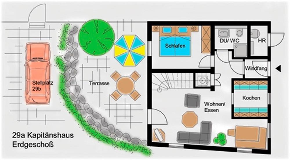 Das "Kapitänshaus" unter Reet Boddenstr. 29a**** ca. 90 m² eignet sich für bis zu 6 Personen und Baby. Es liegt in Groß Zicker, einem der schönsten Inseldörfer auf der Halbinsel Mönchgut und ist stilvoll unter Berücksichtigung des Denkmal- und Naturschutzes errichtet worden.