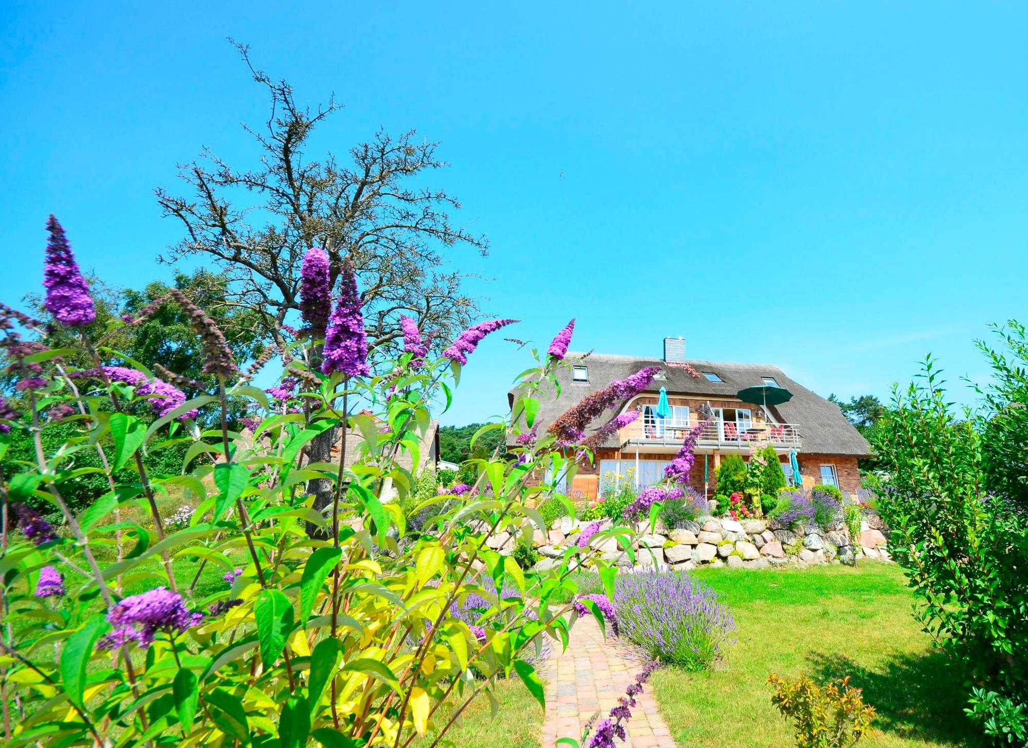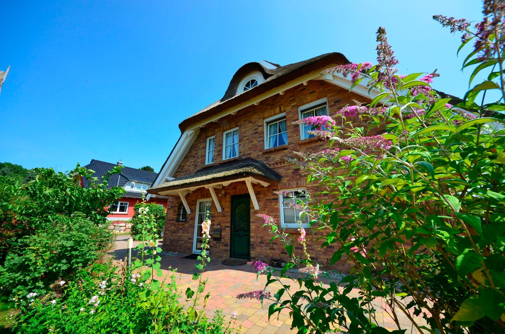 Die reetgedeckte und verklinkerte Doppelhaushälfte liegt in der erste Reihe mit unverbaubarem herrlichem Blick auf die Ostsee und die gegenüber liegenden Orte Thiessow und Klein Zicker.