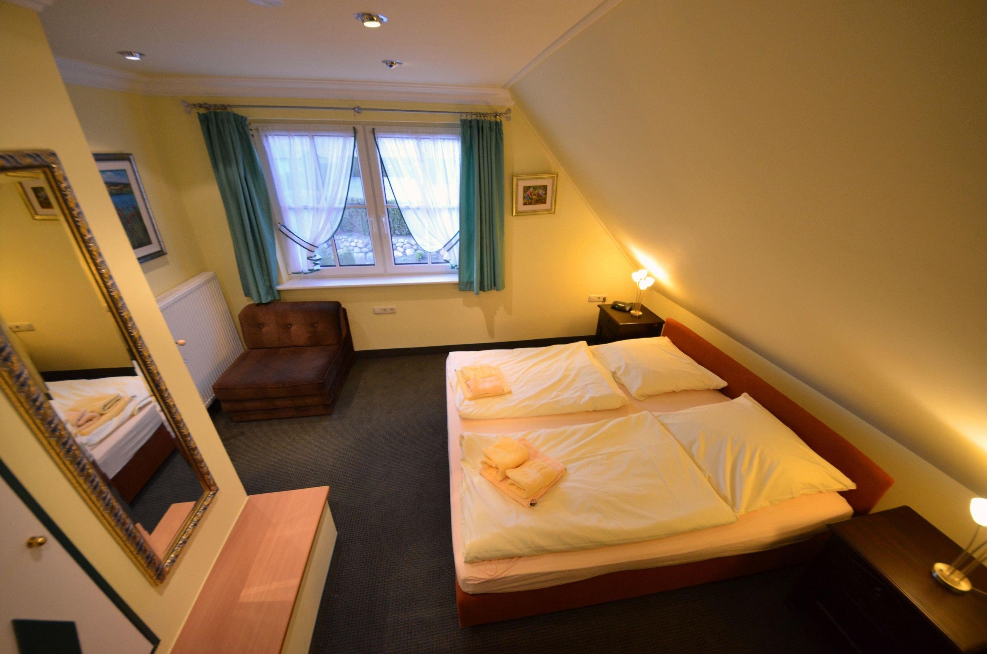2 kleine schräge aber gemütliche und helle Einzelzimmer je mit einem Einzelbett 90 x 200cm.