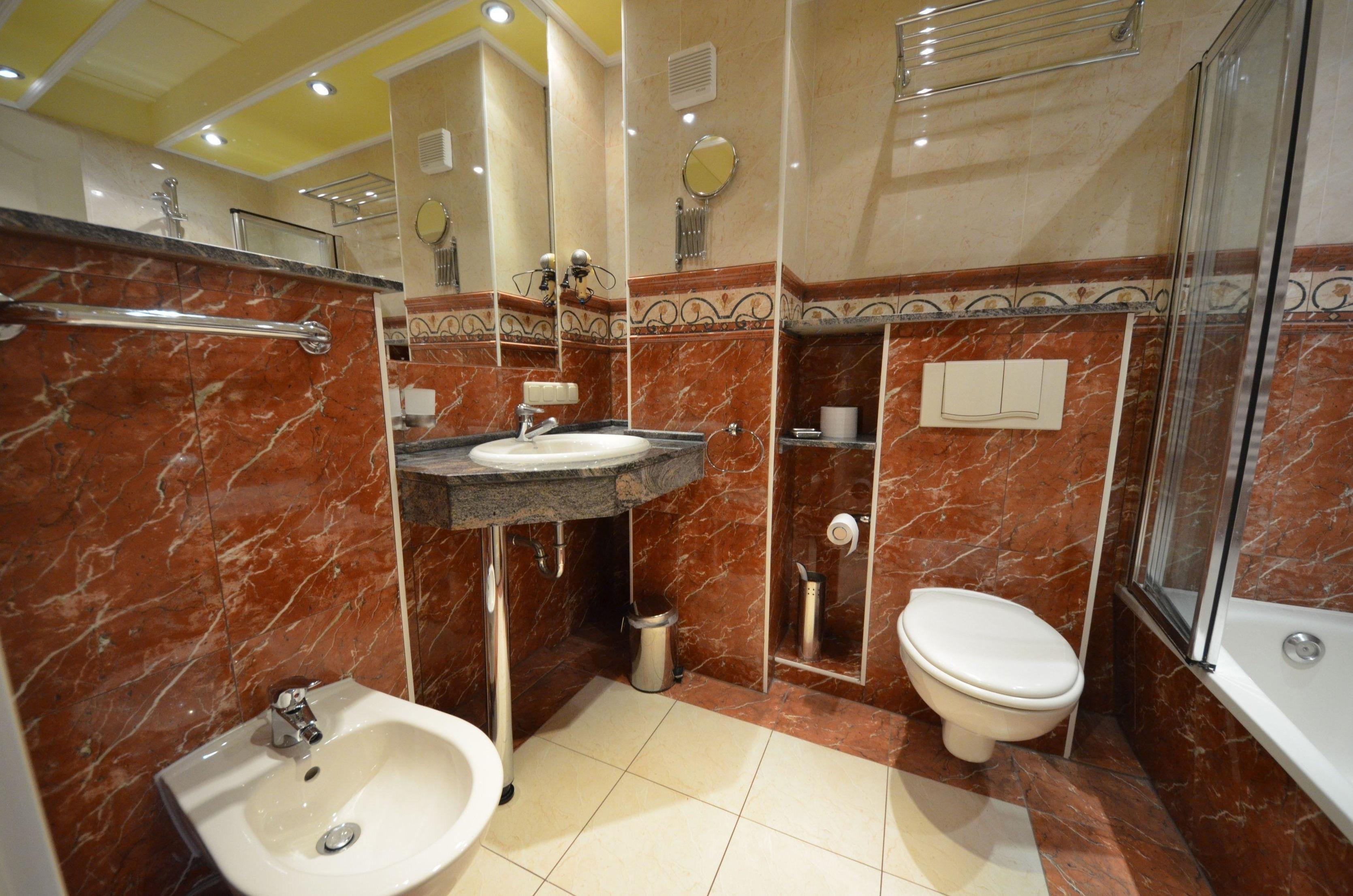 1 Bad mit Wanne / Dusche aus Naturstein / Granit mit Fön und