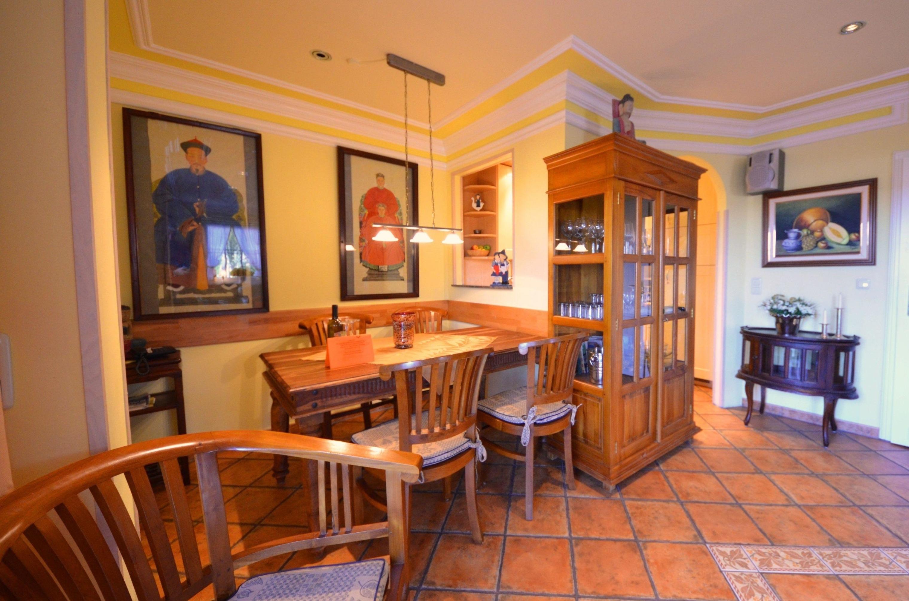 großzügiges Wohn- Esszimmer, schöne Couchgarnitur mit Opiumtisch,