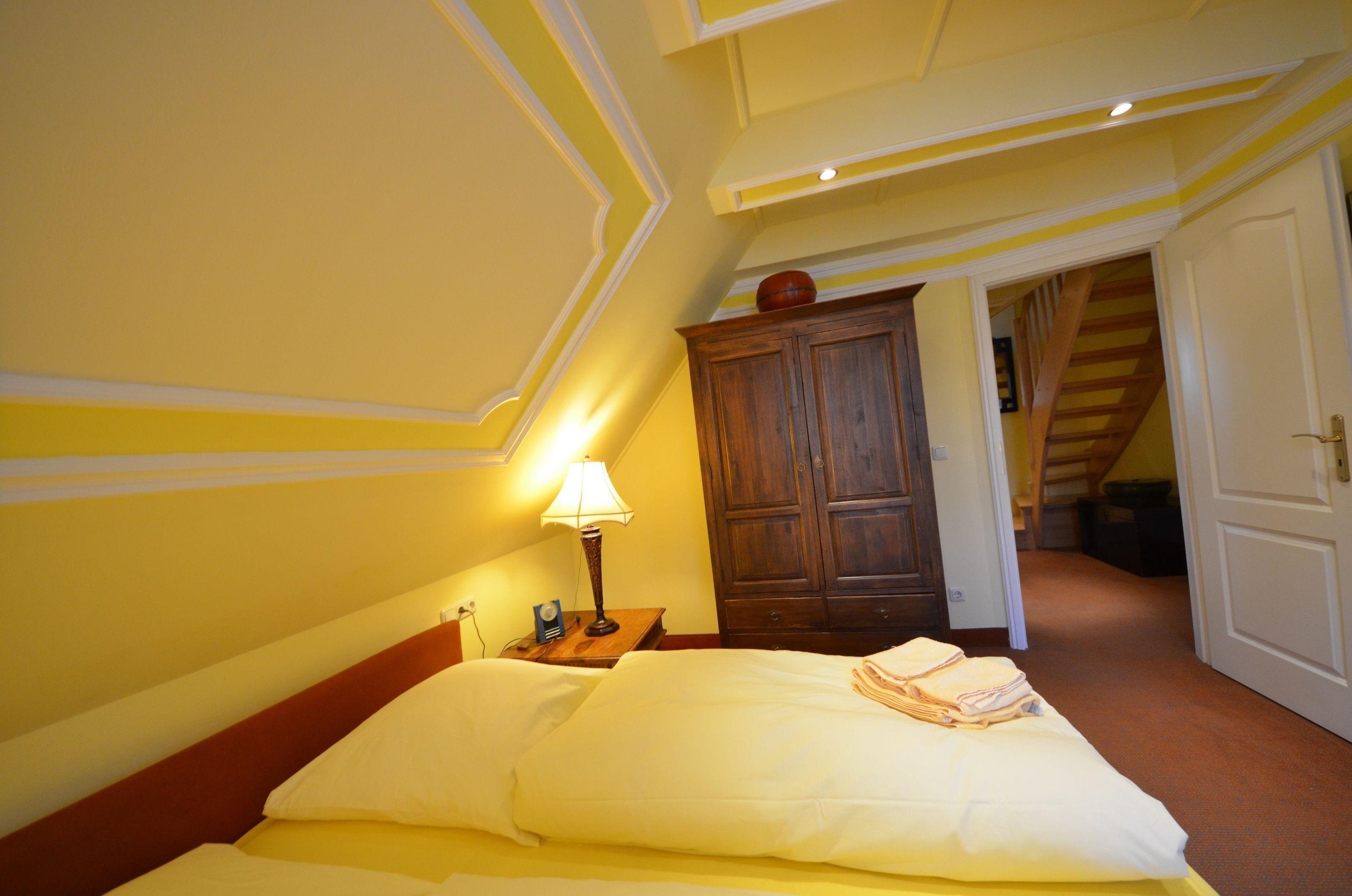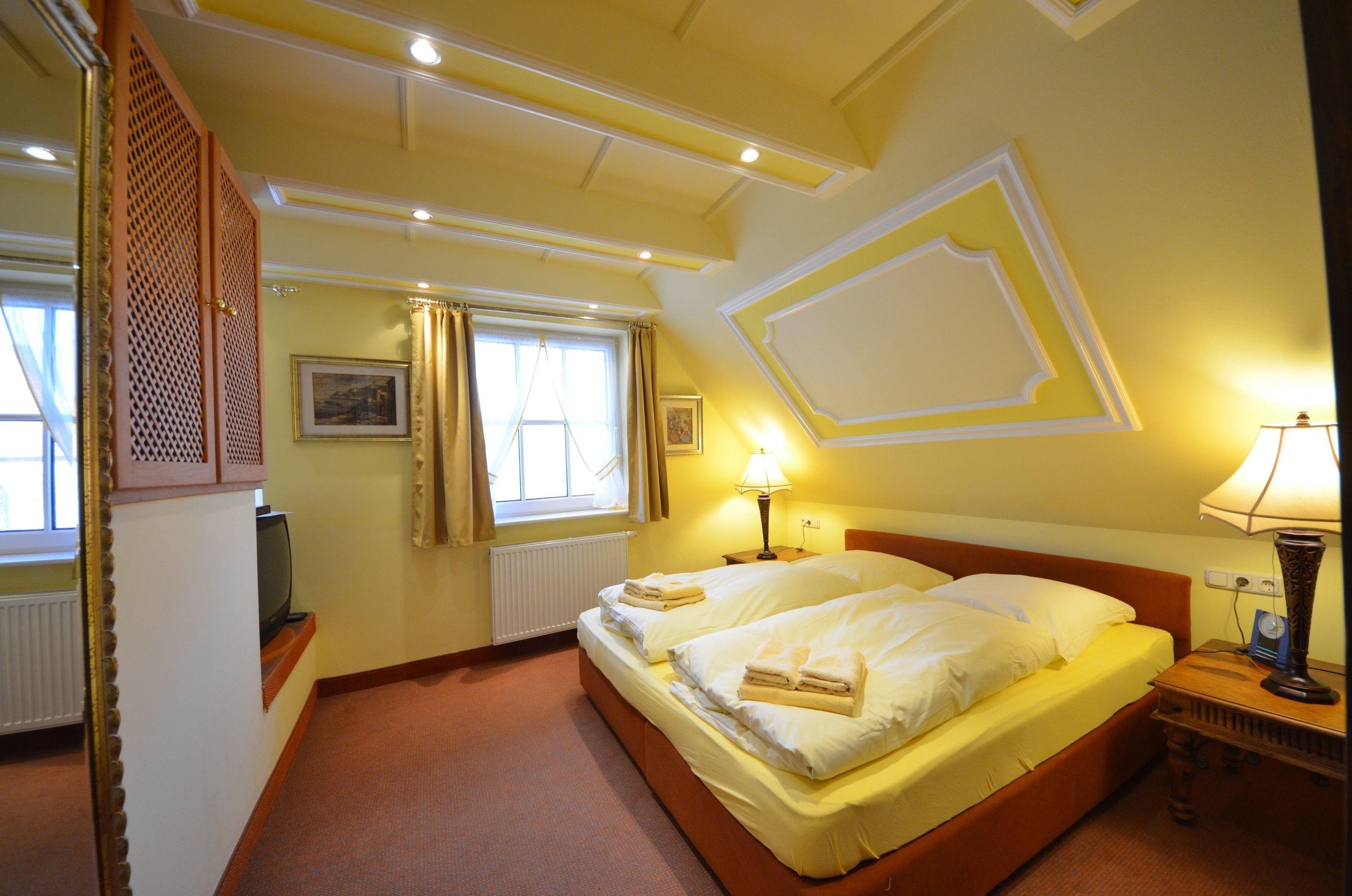 mit Einzelbett 90 x 200 und einmal mit einem Doppelbett 160 x 200. Bettwäsche