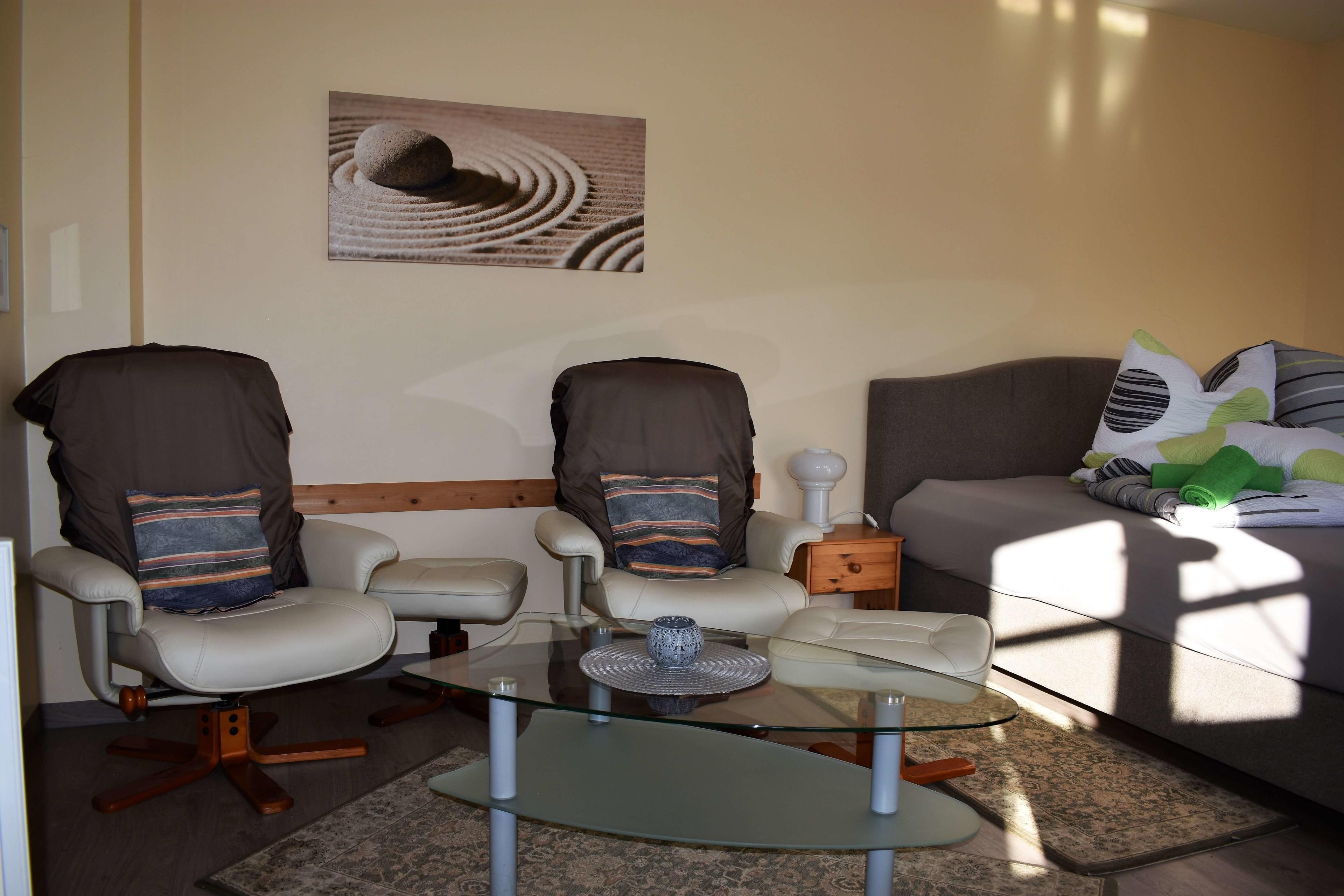 Die gemütliche 1-Zimmer Wohnung bietet Platz für bis zu 2 Personen und befindet sich im 1. Obergeschoss, Sie bietet einen schönen Blick über die Felder, von der Küche aus können Sie auch einen Blick in den Innenhof werfen. Über den Flur gelangen Sie in das helle Badezimmer der Wohnung, der Wohn- und Schlafbereich ist ebenfalls sehr hell und geräumig, der Wohnbereich ist mit einer kleinen Einbauküche und einer Sitzgelegenheit ausgestattet.