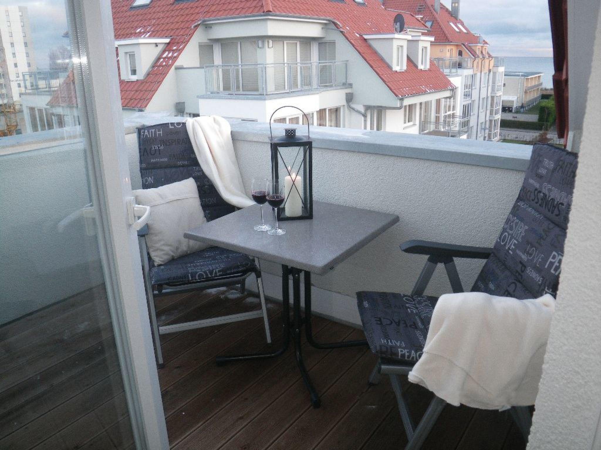 Bis zu drei Personen – Schlafzimmer, Ess- und Wohnbereich, offene Küche, Bad mit Dusche, Terrasse, Ostseeblick, WLAN, nur ca. 100 Meter zum Strand.