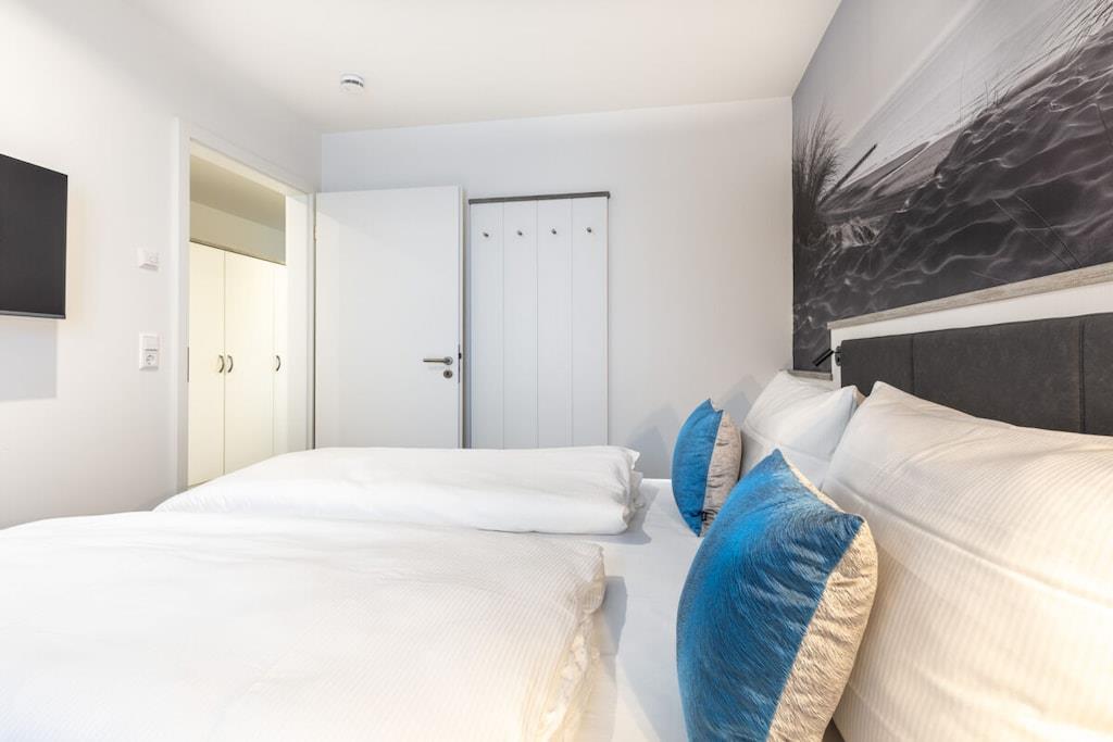 Die 58 m² große 2-Zimmer Ferienwohnung direkt am Strand mit Meerblick ist für bis zu 4 Personen geeignet. Genießen Sie den sonnigen und überdachten Balkon in Süd-West-Lage. Ihr Vierbeiner ist herzlich willkommen! Die Wohnung befindet sich im im zweiten Obergeschoss (Aufzug vorhanden) der Apartmentanlage Meerblickvilla im Ostseeheilbad Großenbrode. Das Apartment ist barrierearm und verfügt über Fußbodenheizung und bodentiefe Fensterflächen, kostenfreies WLAN und eine voll ausgestattete offene Küche mit Geschirrspüler. Im modern-behaglichen Wohn-Essbereich befindet sich eine Doppelschlafcouch (1,60 x 1,95 m) und ein großer Flatscreen-TV. Das separate Schlafzimmer hat zwei bequeme Boxspringbetten und ist mit einem weiteren Flatscreen-TV ausgestattet. Das stilvolle Badezimmer verfügt über eine ebenerdige Regendusche, WC, Waschtisch mit Föhn, Handtuchheizkörper und Fußbodenheizung. Der Saunabereich mit finnischer Sauna, Biosauna und Ruheraum ist selbstverständlich ohne zusätzliche Gebühren nutzbar. Ein Tiefgaragenstellplatz sowie Bettwäsche und Handtücher können sehr gerne auf Wunsch hinzu gebucht werden. Ein Waschraum mit Münzwaschmaschinen und -trocknern runden das Angebot ab.
