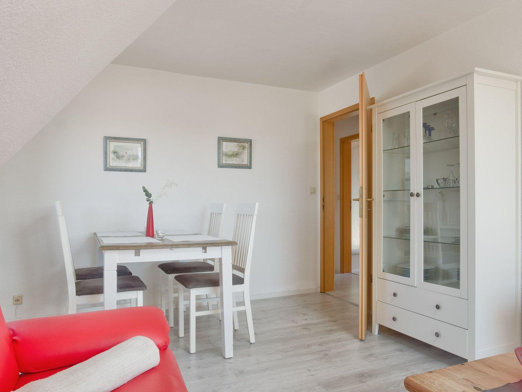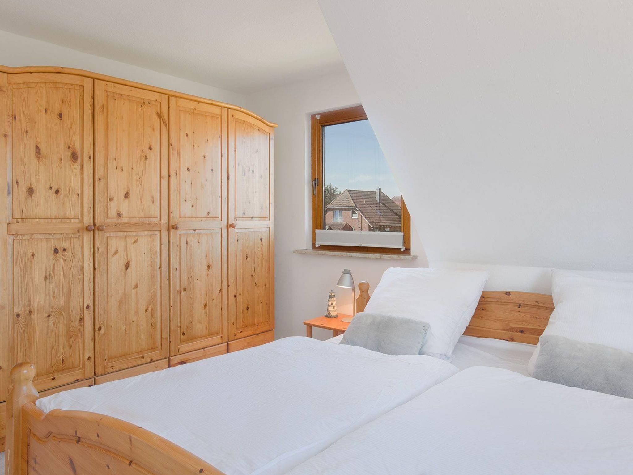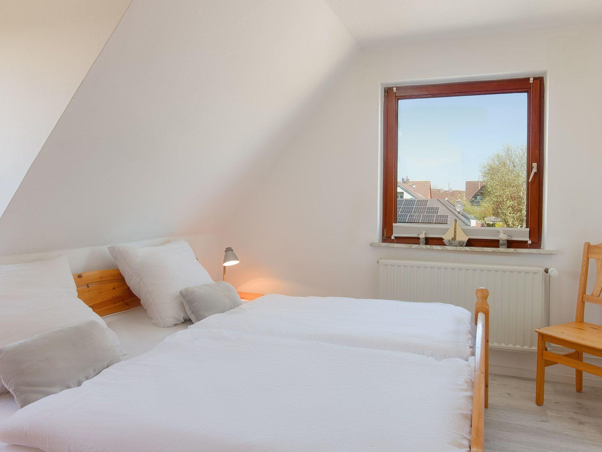 Die schöne, helle Wohnung bietet viel Platz und ist modern eingerichtet. Wohnfreundliche Möbel, LCD-TV und CD-Player sorgen für Wohlbefinden. Der Wohnbereich ist mit einem Laminat-Fußboden ausgestattet. Sie ist besonders interessant für Familien oder max. 4 Erwachsene und 1 Kleinkind, da sie über 1 Schlafzimmer mit Doppelbett und 1 Schlafzimmer mit Einzelbetten verfügt. Hochstuhl und Reisebettchen sind vorhanden. Das Badezimmer mit Dusche ist hell gefliest. Die Küche mit kleinem Essbereich, ist mit einem Herd mit vier Platten, Backofen, Mikrowelle, Kaffeemaschine, Wasserkocher etc. ausgestattet. Ebenso können Fahrräder gegen eine kleine Gebühr genutzt werden.