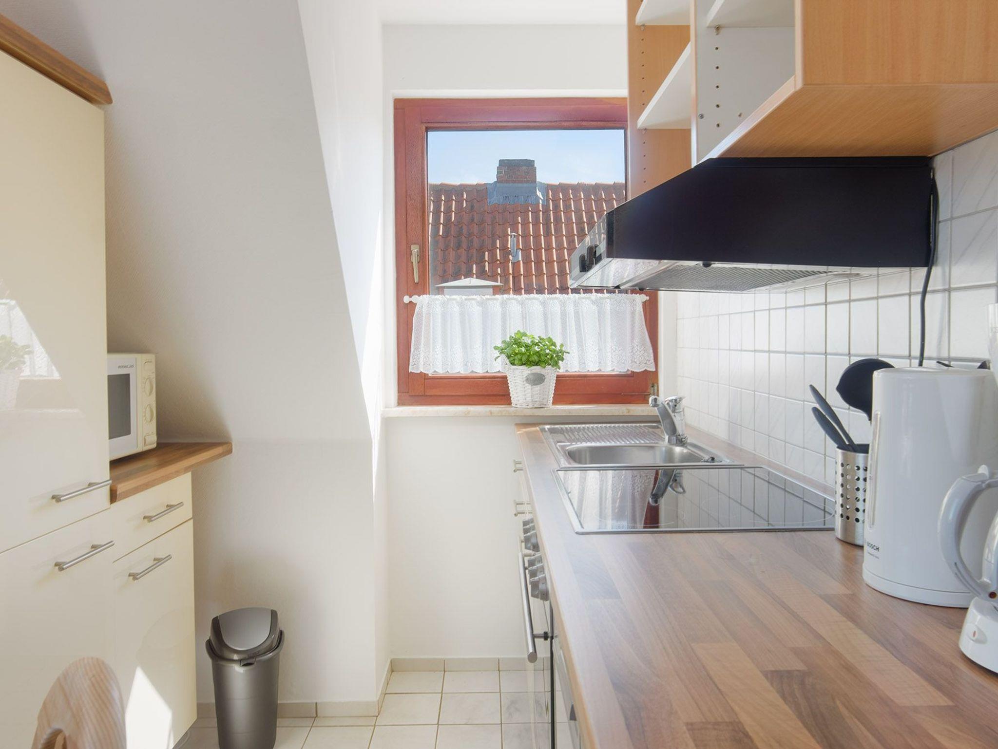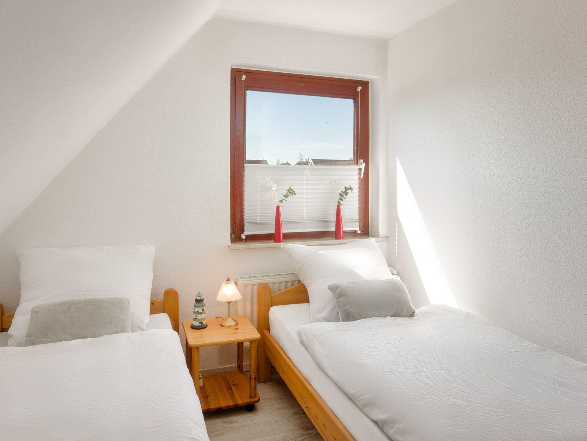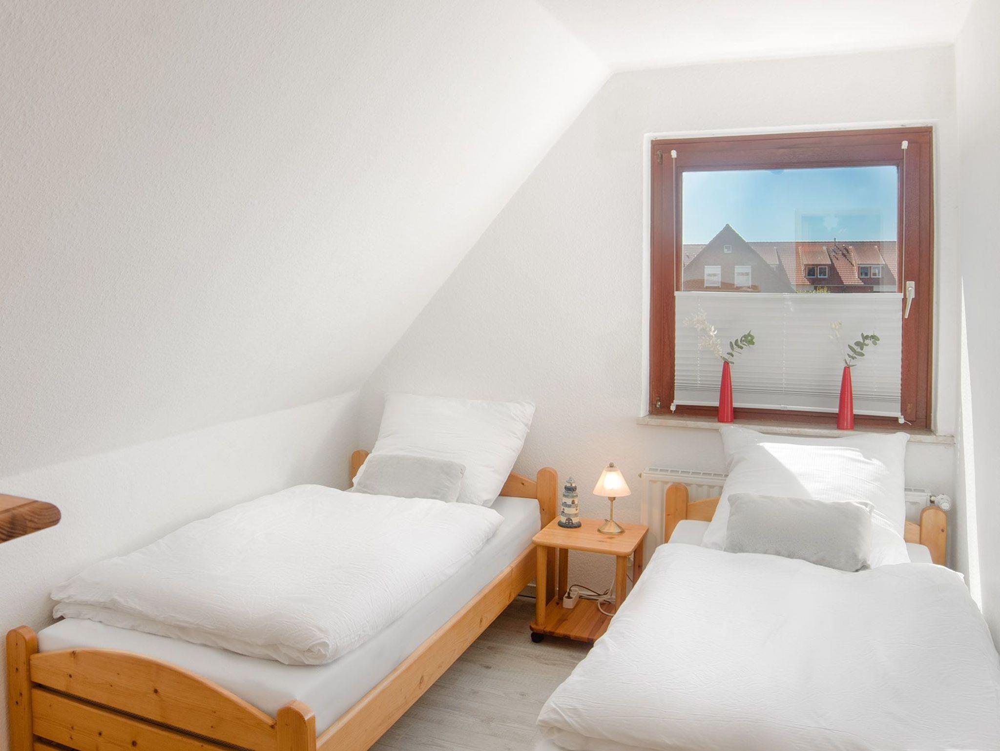 Die schöne, helle Wohnung bietet viel Platz und ist modern eingerichtet. Wohnfreundliche Möbel, LCD-TV und CD-Player sorgen für Wohlbefinden. Der Wohnbereich ist mit einem Laminat-Fußboden ausgestattet. Sie ist besonders interessant für Familien oder max. 4 Erwachsene und 1 Kleinkind, da sie über 1 Schlafzimmer mit Doppelbett und 1 Schlafzimmer mit Einzelbetten verfügt. Hochstuhl und Reisebettchen sind vorhanden. Das Badezimmer mit Dusche ist hell gefliest. Die Küche mit kleinem Essbereich, ist mit einem Herd mit vier Platten, Backofen, Mikrowelle, Kaffeemaschine, Wasserkocher etc. ausgestattet. Ebenso können Fahrräder gegen eine kleine Gebühr genutzt werden.