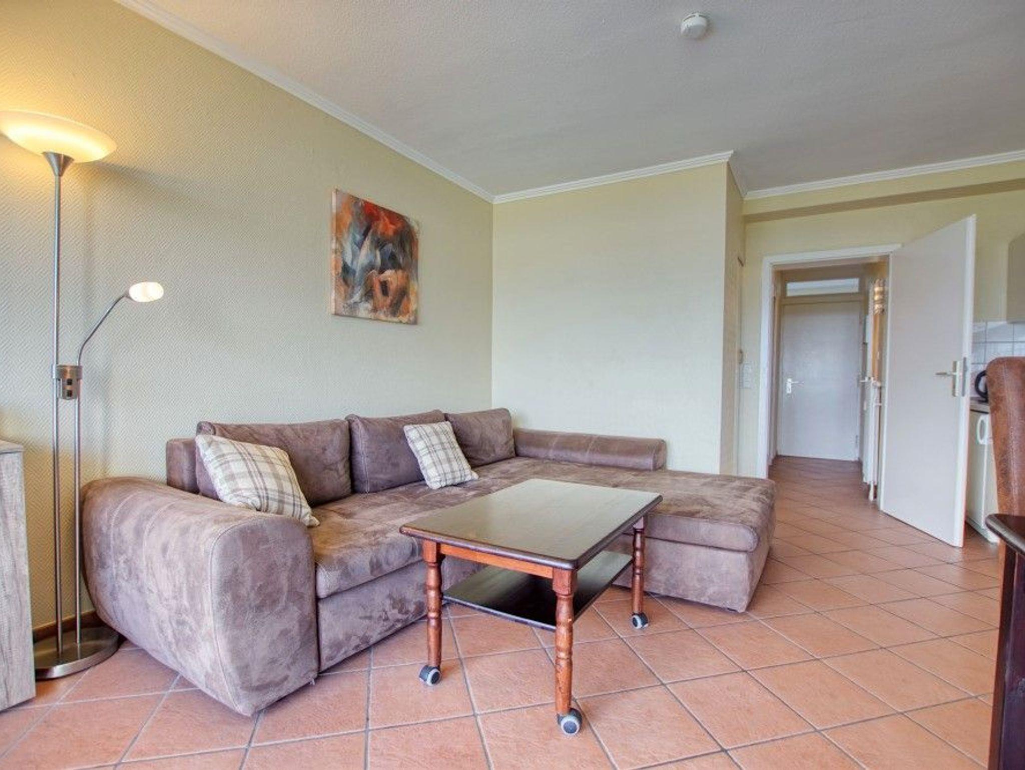 Geräumiges Wohnzimmer mit gemütlicher Essecke und Schlafcouch für 2 Personen