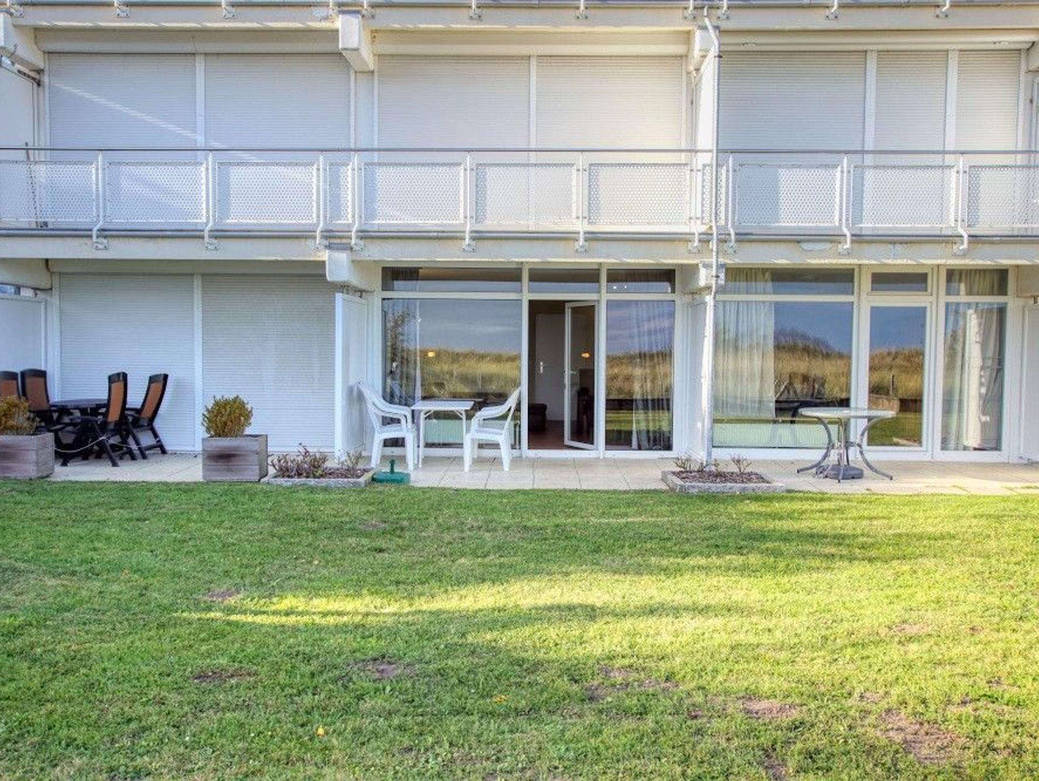 Erdgeschosswohnung mit direktem Zugang zur Terrasse und Blick auf die Strandpromenade