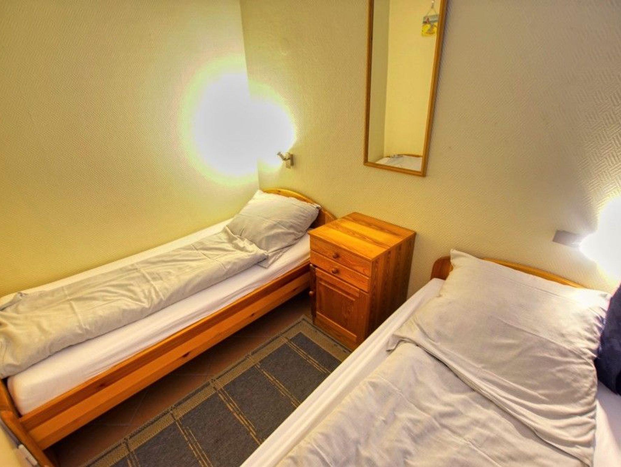 Elternschlafbereich mit zwei Einzelbetten, separat durch eine Tür getrennt