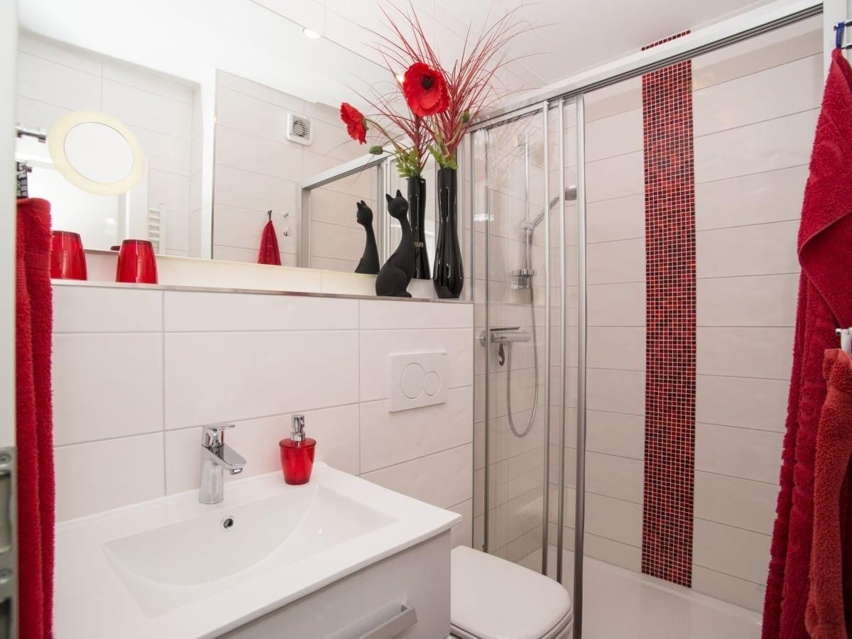Bettwäsche und Handtücher können Sie getrost zuhause lassen. Sie können die Wäsche, pro Person je 1 Handtuch, 1 Duschtuch und 1 Küchenhandtuch, gegen Gebühr ausleihen. Die Betten sind dann selbstverständlich bereits, mit farblich abgestimmter Bettwäsche, frisch bezogen und Ihr Urlaub beginnt sofort. Die Küche ist komplett eingerichtet!! Lassen Sie alles zu Hause, was Sie zum Kochen benötigen könnten. Das Rezept im dritten Kochbuch von links, Seite 17, ist übrigens sehr zu empfehlen und schmeckt toll! Genießen Sie das gemeinsam gekochte Essen, bei einem Glas Rotwein, anschließend auf dem Balkon mit Blick auf die glitzernde Ostsee.