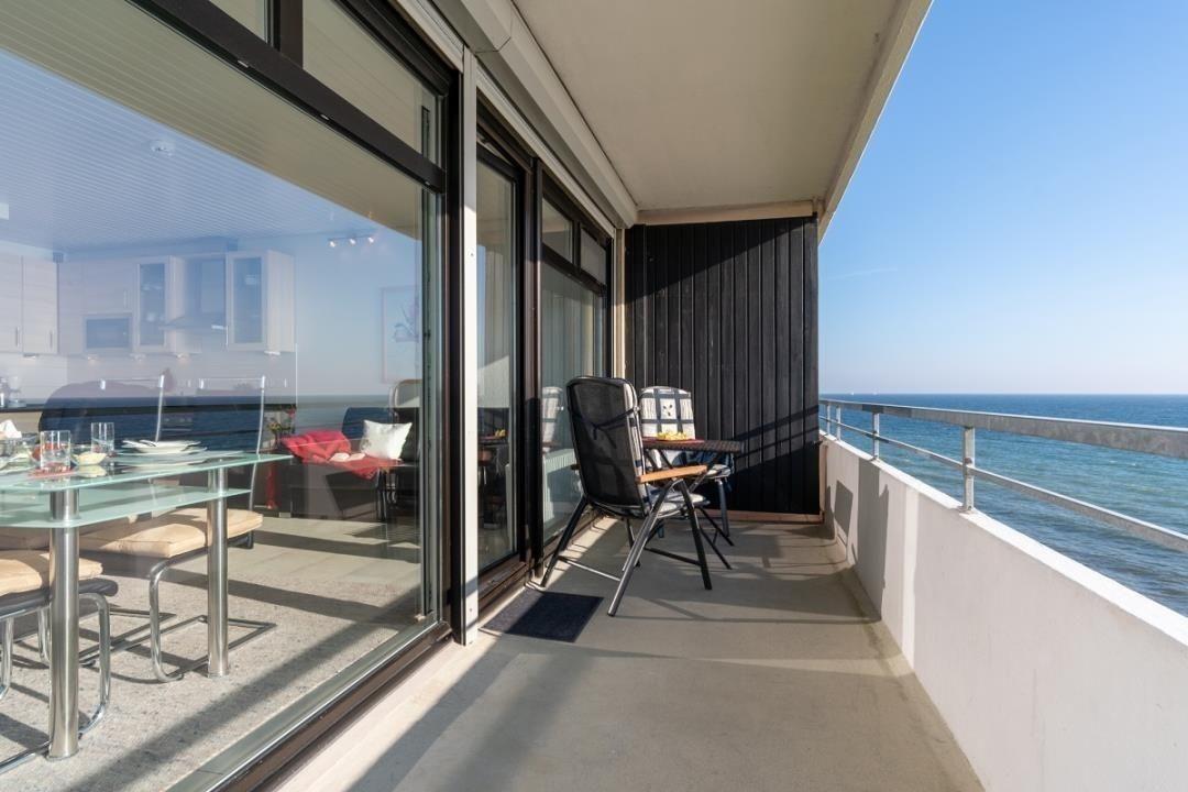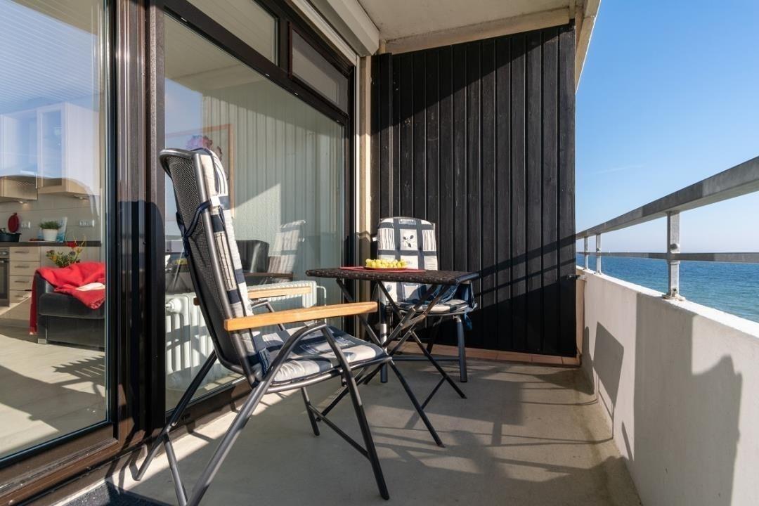 Moderne Ferienwohnung mit Balkon und direktem Meerblick in Großenbrode, ideal für erholsamen Familienurlaub an der Ostsee.