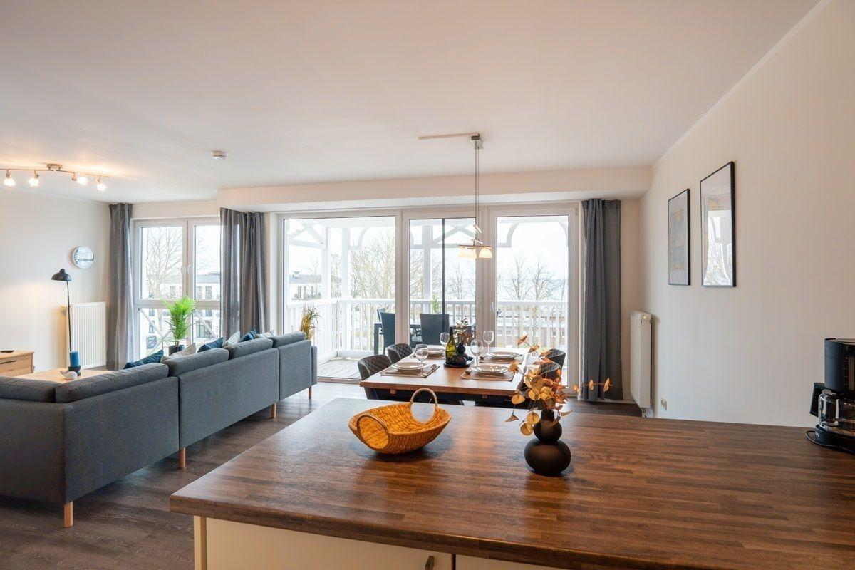 Moderne 3-Zimmer-Ferienwohnung mit Sauna, Whirlpool und Meerblick in Großenbrode, perfekt für erholsame Urlaubstage.