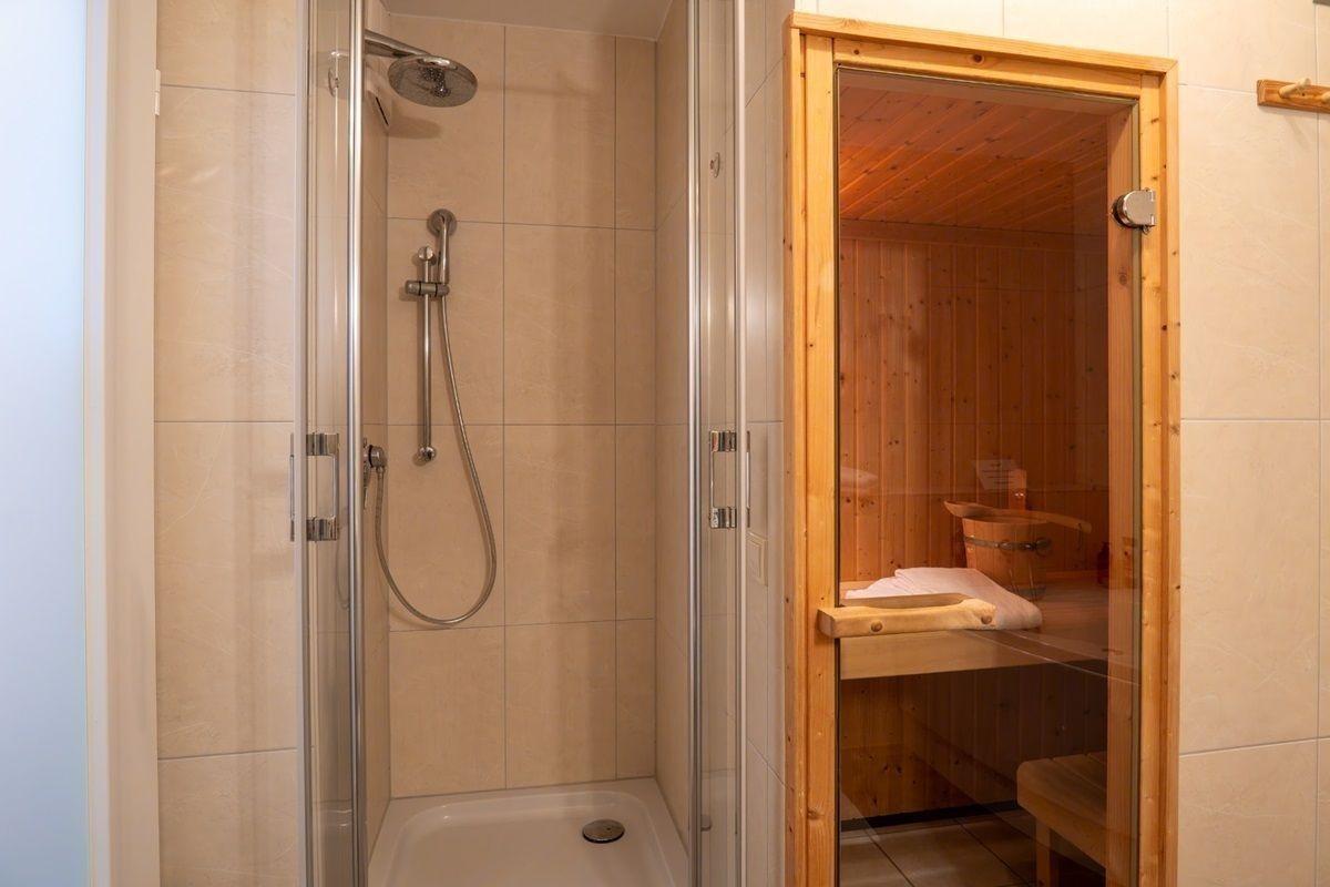 Beide Schlafzimmer verfügen über ein gemütliches Doppelbett (mit je zwei Matratzen). Der offene Küchenbereich ist, für den Urlaubsbedarf, voll ausgestattet. Ein Backofen und ein Geschirrspüler gehören ebenso dazu, wie die Kaffeemaschine, der Wasserkocher und ein Toaster. Geschirr und Besteck sind ausreichend vorhanden. Das Badezimmer ist mit einer Dusche mit Glastrennwand ausgestattet, außerdem steht hier noch eine eigene Sauna und Whirlpoolbadewanne zur kostenfreien Nutzung.