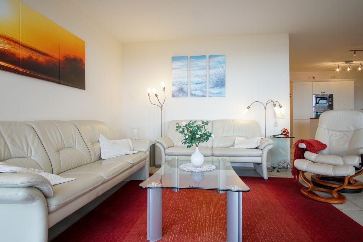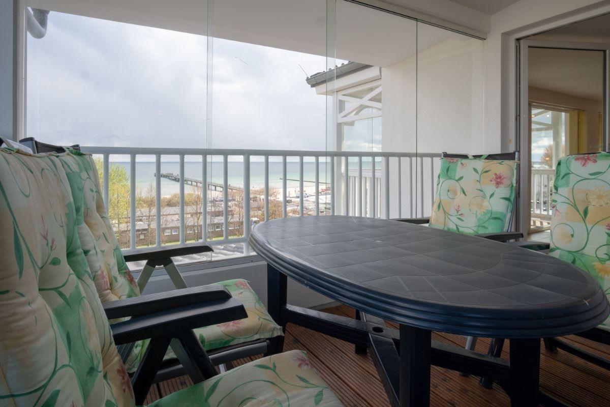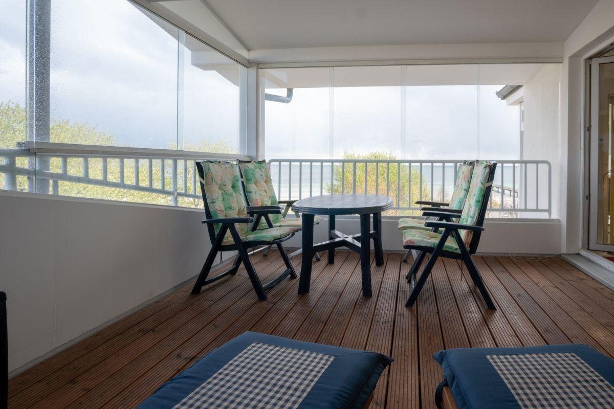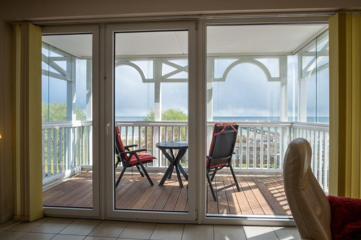 Vom Wohnzimmer aus gelangen Sie auf den Balkon mit traumhaften Blick zum Strand und zur Ostsee.