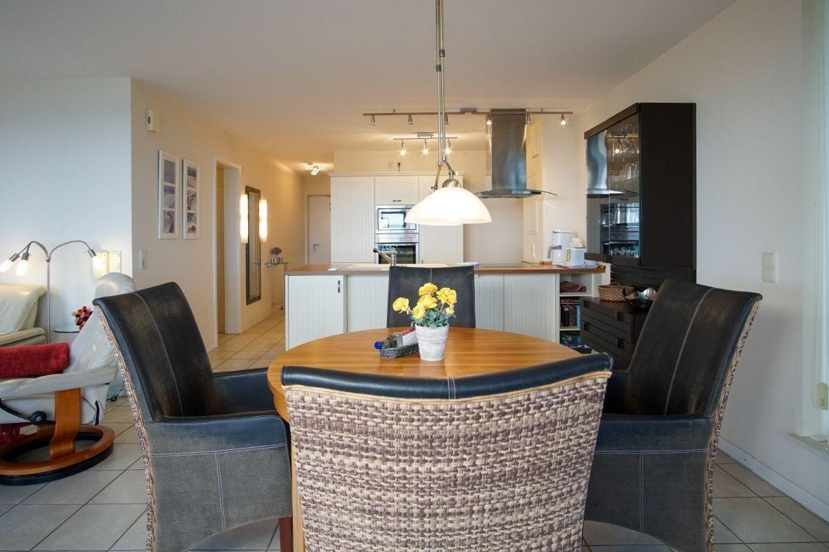Urlauben Sie auf großzügigen 103 m² (5. Etage) mit Balkon (eingeglast) und tollem Blick zum Meer. Das große Wohn-Esszimmer ist mit einer gemütlichen Sofaecke und Flatscreen-TV ausgestattet. Im Essbereich finden bequem vier Personen Platz zum Schlemmen.