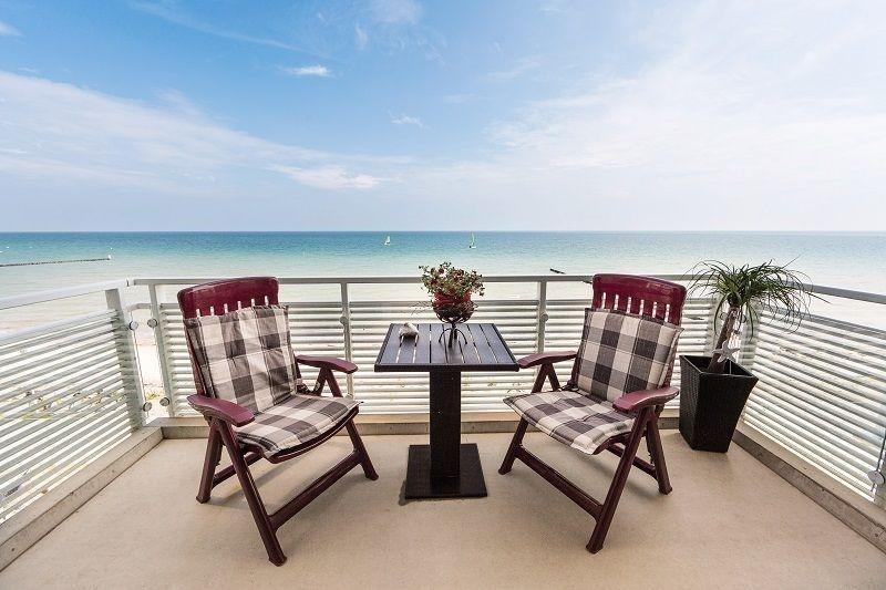Vom Wohnzimmer aus gelangen Sie auf den Balkon mit traumhaften Blick zum Strand und zur Ostsee.