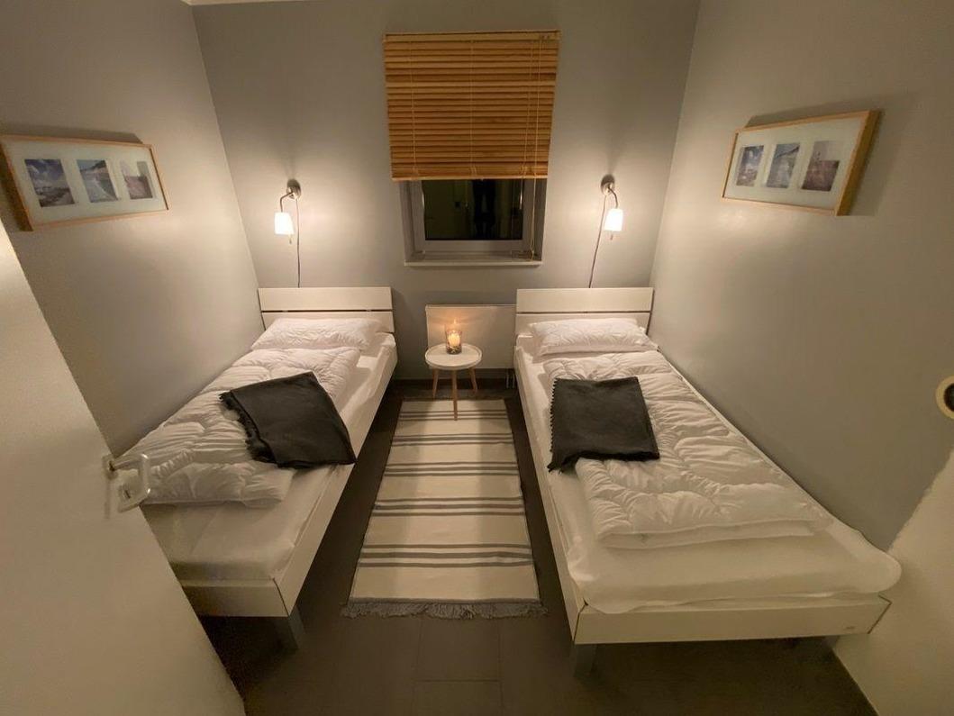 Urlauben Sie auf großzügigen 70 m² (2. Etage) mit Balkon und tollem Blick zum Meer. Das große Wohn-Esszimmer ist mit einer gemütlichen Sofaecke und Flatscreen-TV ausgestattet. Im Essbereich finden bequem vier Personen Platz zum Schlemmen. Vom Wohnzimmer aus gelangen Sie auf den Balkon mit traumhaften Blick zum Strand und zur Ostsee. Das große Schlafzimmer verfügt über ein gemütliches Doppelbett (mit zwei Matratzen) und einem eigenen TV. Das zweite Schlafzimmer ist mit zwei komfortablen Einzelbetten eingerichtet. Der offene Küchenbereich ist, für den Urlaubsbedarf, voll ausgestattet. Ein Backofen und ein Geschirrspüler gehören ebenso dazu, wie die Kaffeemaschine, der Wasserkocher und ein Toaster. Geschirr und Besteck sind ausreichend vorhanden. Das Badezimmer ist mit einer Dusche mit Glastrennwand ausgestattet.