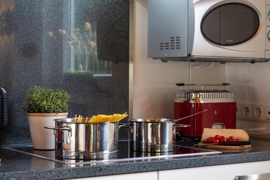 Urlauben Sie in unserm großzügigen 4-Zimmer-Ferienhaus mit Terrasse und Blick ins Grüne. Das große Wohn-Esszimmer ist mit einer gemütlichen Sofaecke und Flatscreen-TV ausgestattet. Im Essbereich finden bequem fünf Personen Platz. Der angrenzende Küchenbereich ist, für den Urlaubsbedarf, voll ausgestattet. Eine Mikrowelle, ein Backofen, Heißluftfritteuse und ein Geschirrspüler gehören ebenso dazu, wie die Kaffeemaschine, der Wasserkocher und ein Toaster. Geschirr und Besteck sind ausreichend vorhanden.