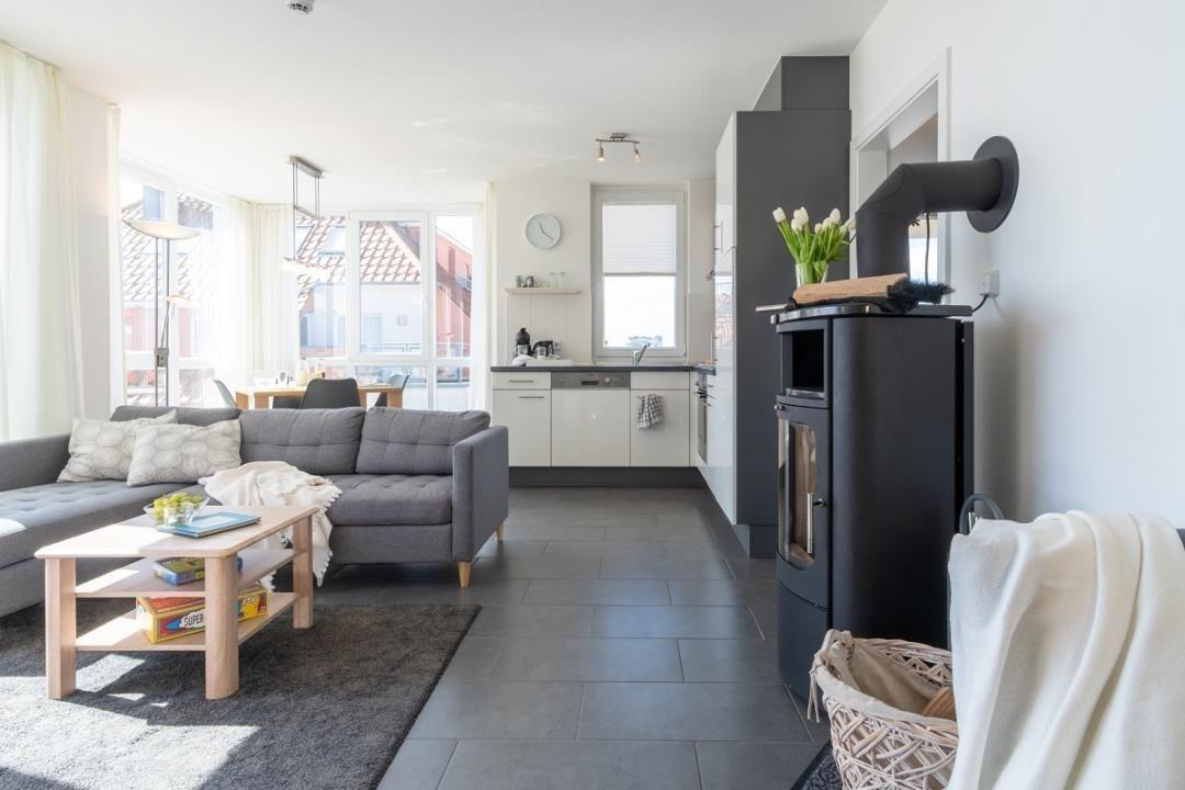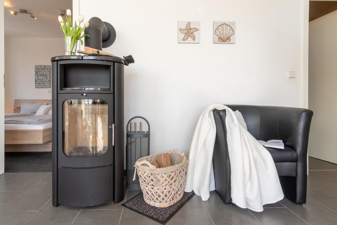 Moderne Ferienwohnung in Großenbrode mit Sauna, Whirlpool, Kaminofen und Meerblick für erholsamen Urlaub.