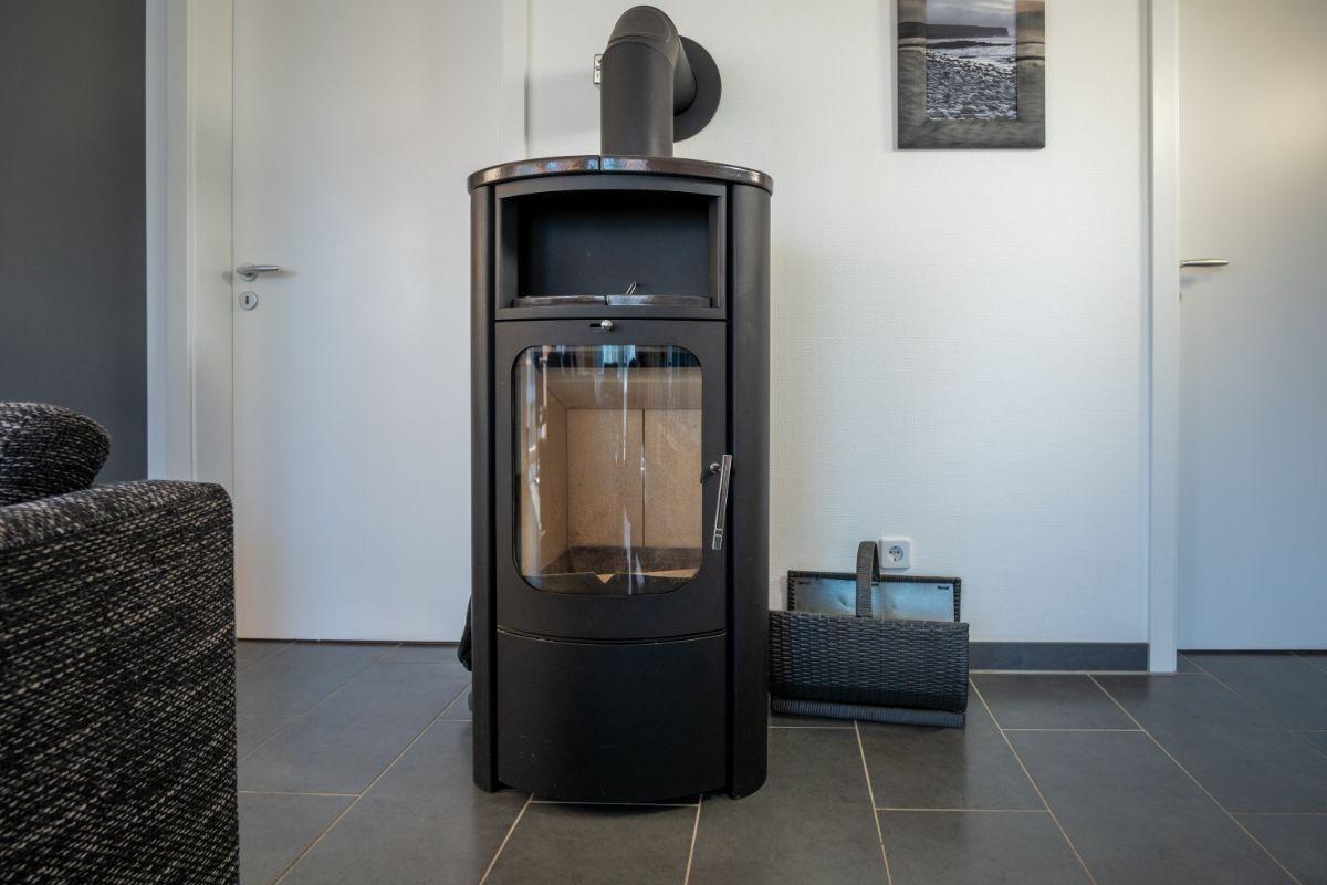 Moderne Ferienwohnung mit Balkon, Kaminofen und Meerblick in Großenbrode für erholsamen Familienurlaub.