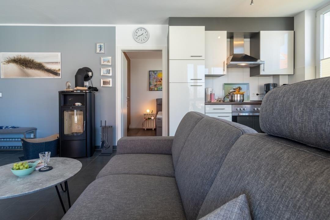 Moderne Ferienwohnung in Großenbrode mit Sauna, Balkon und Kaminofen für erholsamen Familienurlaub am Strand.