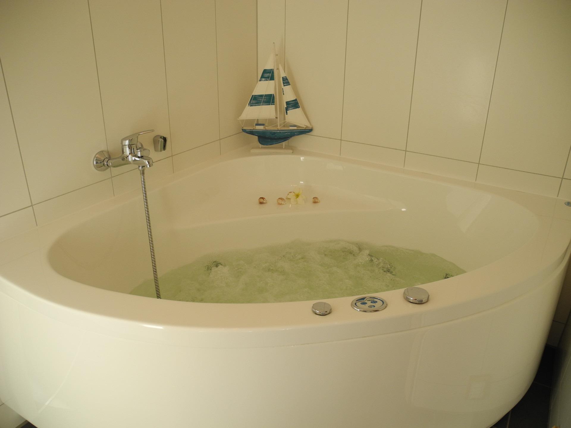 Auch in unserem Wellnessbad bleiben keine Wünsche offen. Lassen Sie die Sorgen des Alltags hinter sich und verbringen wohltuende Momente im Whirlpool, unter der Wellnessdusche oder in der Sauna - das ist Erholung pur!