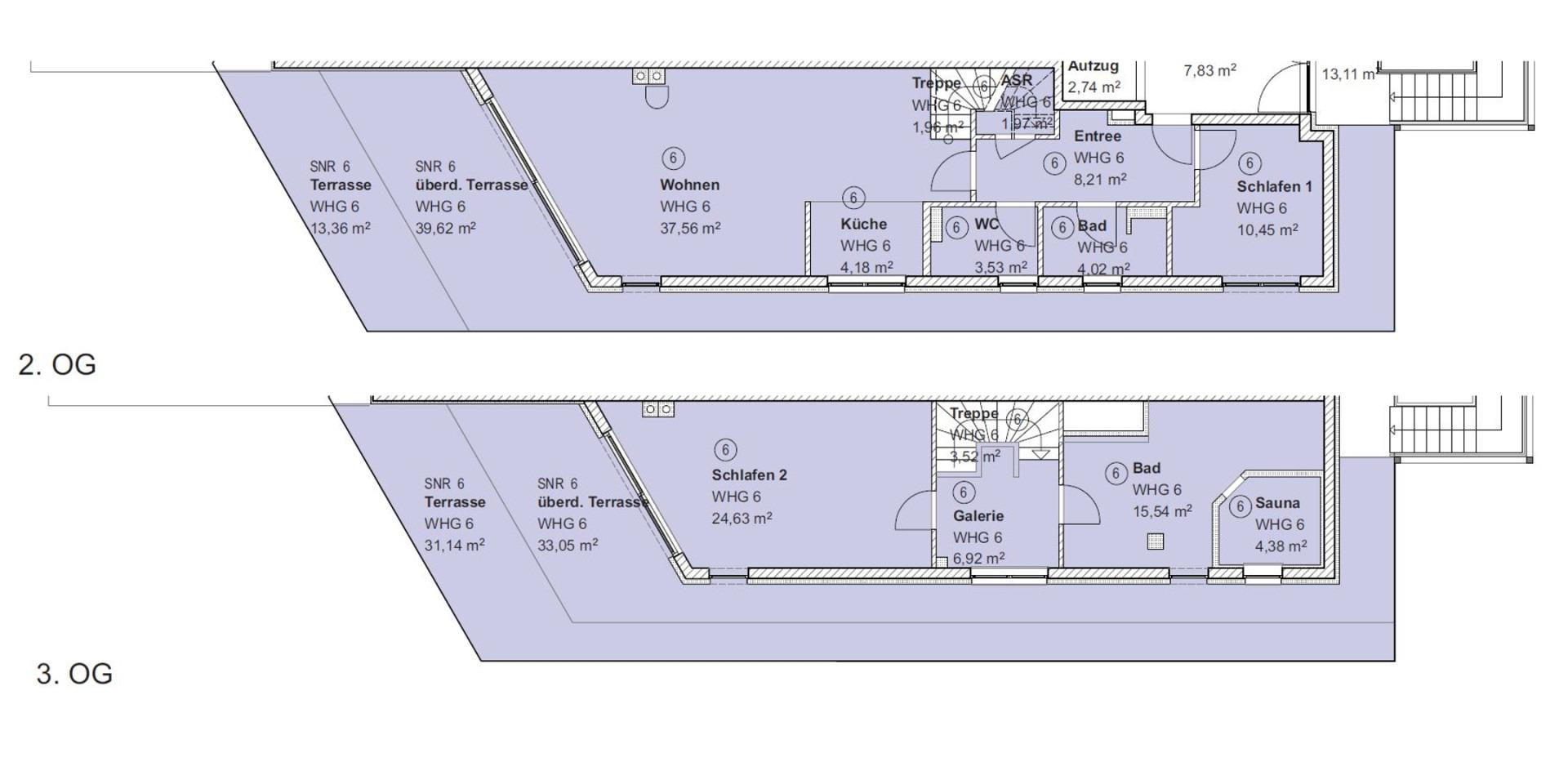 Die Wohnung befindet sich in der 2. und 3. Etage. Der Balkon ist nach Süd-Osten ausgerichtet.