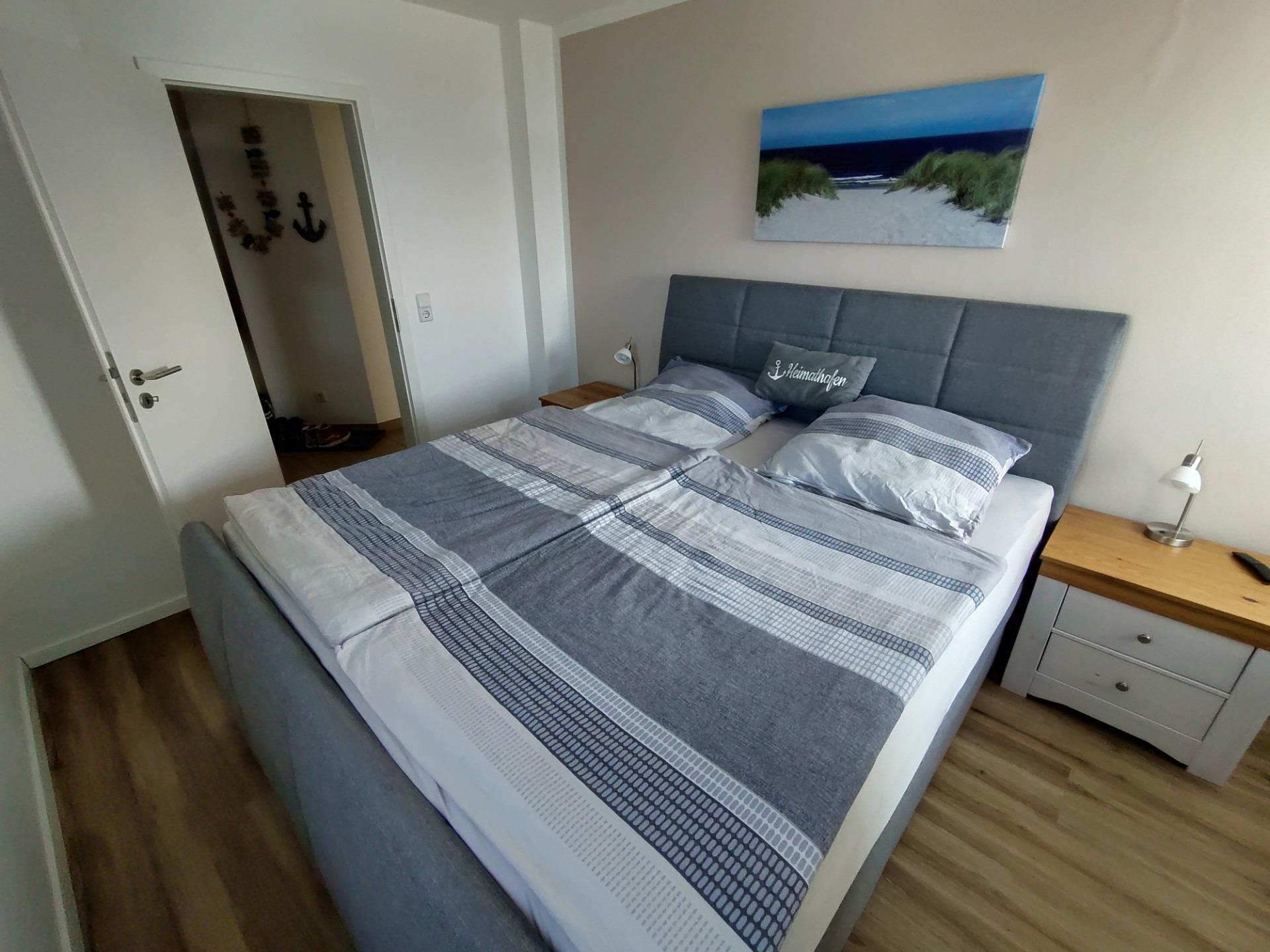 Zwei Schlafzimmer mit bequemen Doppelbetten und Fernseher spenden erholsamen Schlaf. Beide Schlafzimmer sind mit Plissees ausgestattet, das kleine Schlafzimmer verfügt zusätzlich über Verdunklungsgardinen. Die zweite Dachterrasse mit Strandkorb ist von beiden Schlafzimmern aus begehbar.